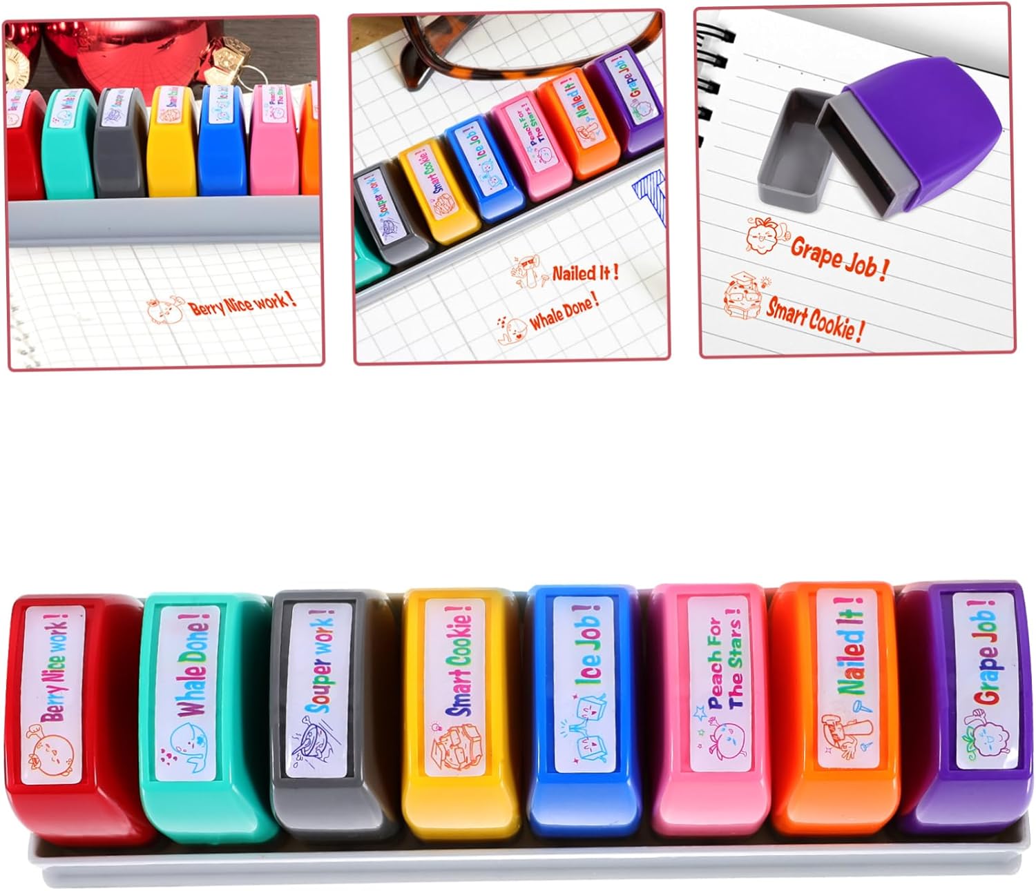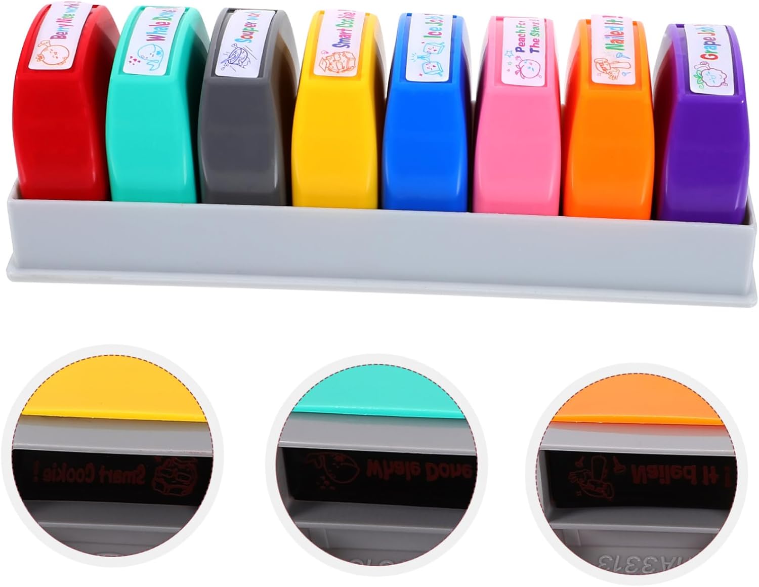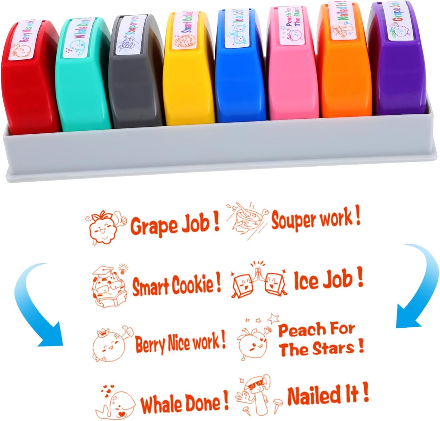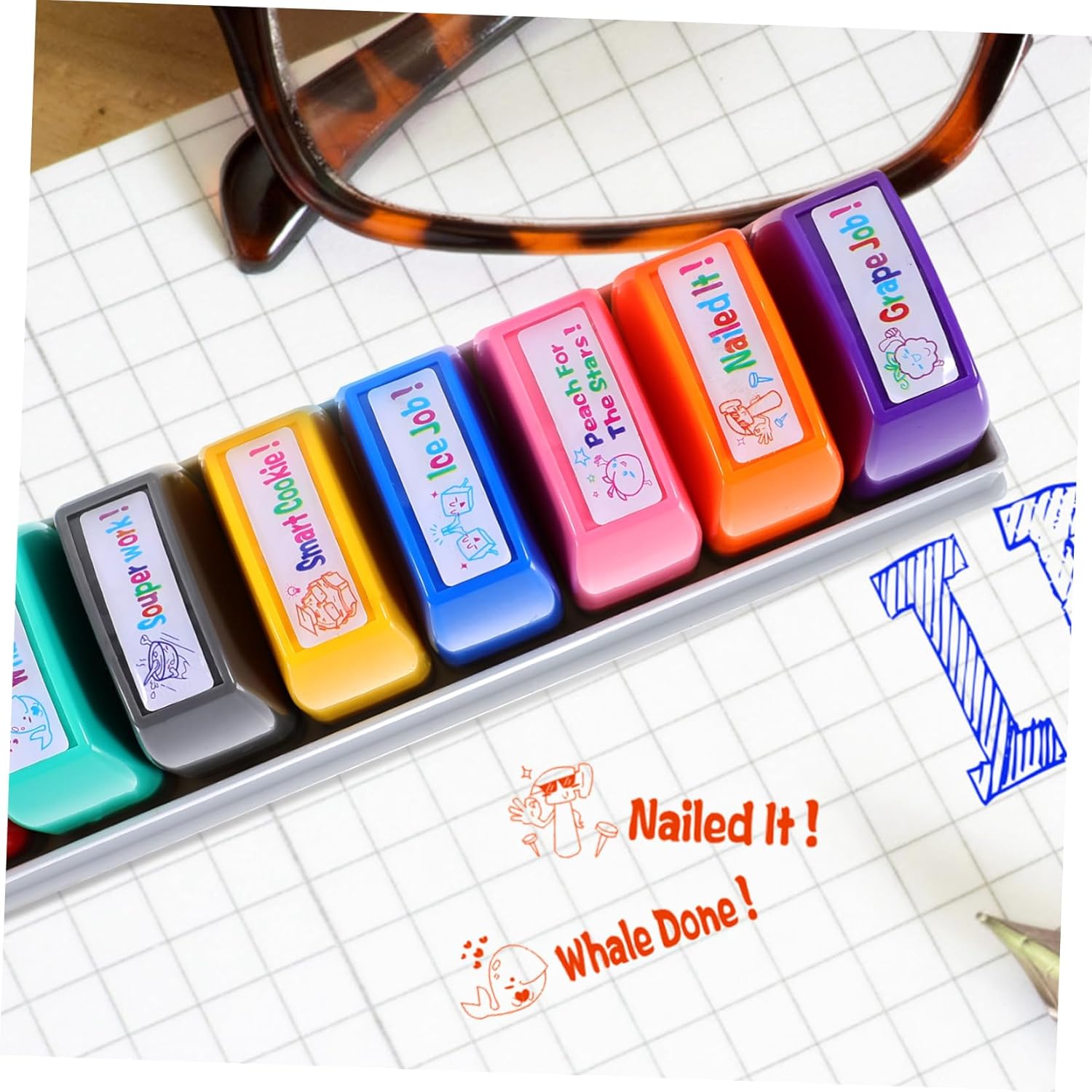 Timbro per insegnanti: puoi utilizzare questo timbro per insegnanti in plastica in ogni occasione, in classe, a casa, alle feste, ecc. Piccoli timbri per studenti Piccoli timbri pratici: design adorabile e creativo che garantisce la loro popolarità e praticità non solo tra i bambini ma anche tra gli adulti. Timbro con commenti divertenti: il timbro ha vari commenti interessanti per incoraggiare e migliorare la tua motivazione all'apprendimento. timbro portatile per insegnanti, timbro per insegnanti Piccoli francobolli per: puoi inviare questo timbro per insegnanti come timbro per i tuoi studenti, amici, ecc. Timbri portatili per bambini - realizzati in materiali ABS, sono riutilizzabili e sicuri e possono essere utilizzati a lungo, timbro per bambini
