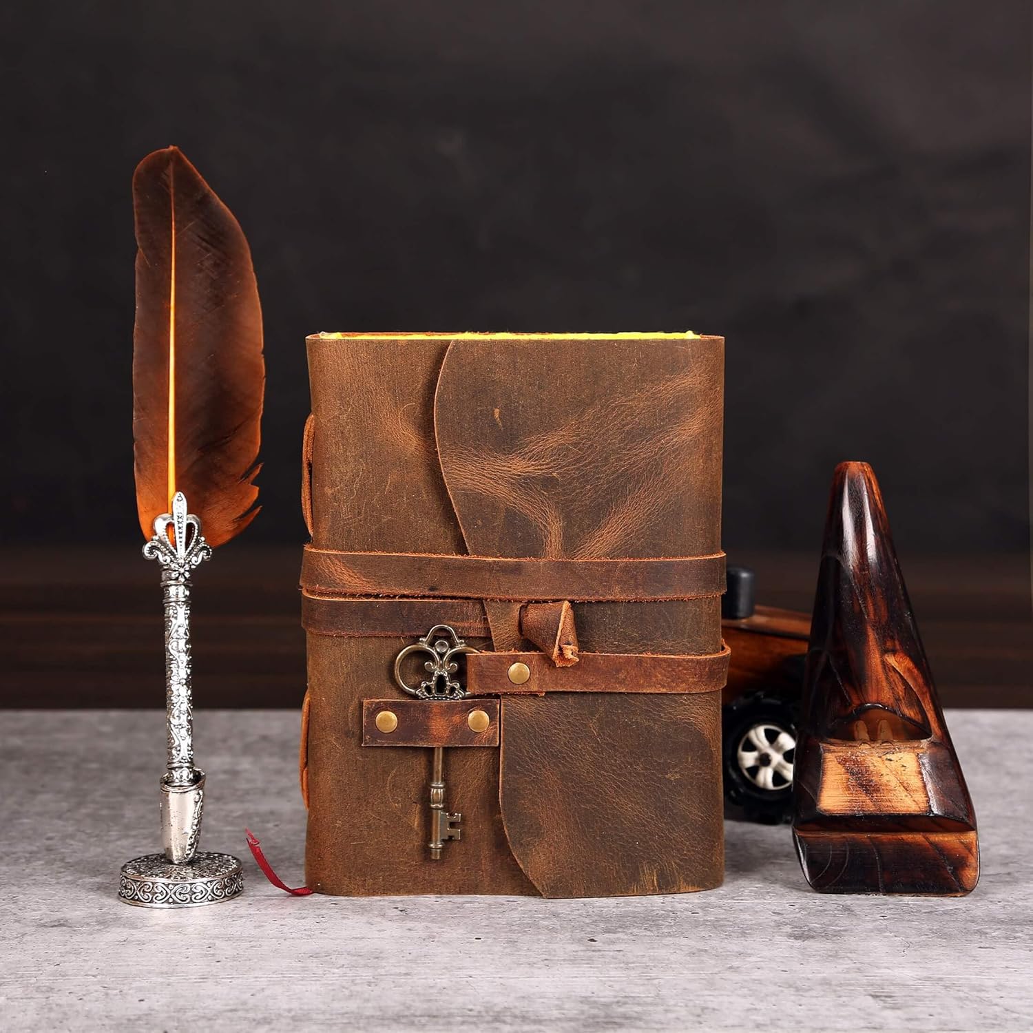 Elegante design vintage con serratura a chiave color cuoio: migliora la tua esperienza di journaling con un diario in pelle splendidamente realizzato a mano con un esclusivo lucchetto a chiave color cuoio, perfetto per coloro che apprezzano l'artigianato senza tempo. Pagine premium: ogni diario ha 200 pagine multicolori, fornendo una straordinaria tela per la tua creatività, sia che si tratti di scrivere, disegnare o creare scrapbooking. Compatto ma spazioso: con dimensioni di 8 x 6 pollici e 1,5 pollici di spessore, questo diario è perfettamente portatile, ideale per viaggi, riunioni o riflessioni personali fornendo ampio spazio per i tuoi pensieri. Cucito a mano da artigiani, crea un ricordo che custodirai per sempre. Un fantastico regalo per gli uomini, le donne e i Wiccan della tua vita. Rilegatura forte e robusta, busta e chiave in pelle: i diari di grande qualità iniziano sempre con la rilegatura. Per il diario vintage in pelle con chiave, la rilegatura è robusta cucita a mano per garantire che la carta non si allenti. La busta in pelle aggiunta con una simpatica chiave scorrevole garantisce che i documenti siano sicuri e protetti. ARTIGIANATO ECOLOGICO E SOSTENIBILE: Realizzato con pelle ecologica di alta qualità e materiali sostenibili, questo diario non è solo un acquisto, è un contributo al pianeta e un cenno alla vita sostenibile.