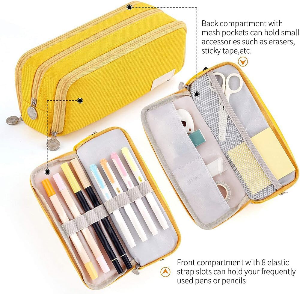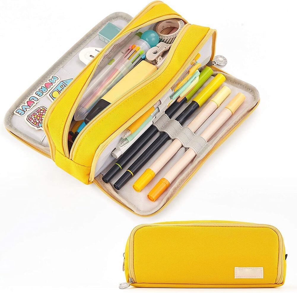 Materiale di alta qualità: l'astuccio è realizzato in tessuto di poliestere di alta qualità, la cerniera è super uniforme e tutte le cuciture sono ben lavorate, ha una lunga durata. Nel resto, questo astuccio ha una maniglia per il trasporto che lo rende facile da trasportare. Grande capacità: questo astuccio offre un grande scomparto principale con cerniera per 30-40 penne, trucco, calcolatrice, triangolo geografico e altre esigenze quotidiane per studenti, insegnanti, ecc. 【Design di apertura multiple】 È possibile aprire questo astuccio dall'alto o dal lembo anteriore. Sul lembo anteriore ci sono 4 anelli di gomma che possono essere utilizzati frequentemente per attaccare penne o pennelli da trucco per le ragazze per prenderli rapidamente. 【Regalo ideale】 si concentra su astucci da decenni e offre ai nostri clienti astucci più alla moda e pratici. Abbiamo molti colori per voi da scegliere. Il miglior regalo per bambini, ragazzi, ragazze, adolescenti, donne, amici, insegnanti, ecc. 【Multifunzione】 L'astuccio è una borsa multifunzione che può soddisfare le esigenze reali di diverse persone. Questo astuccio può essere utilizzato non solo come astuccio per matite per l'ufficio e la scuola, ma anche come astuccio per il trucco per le ragazze.