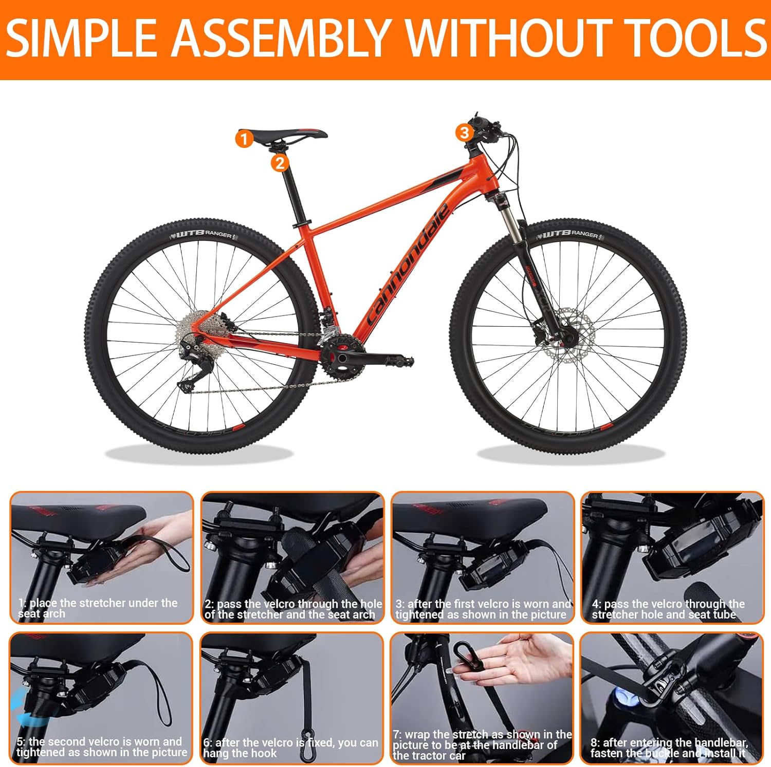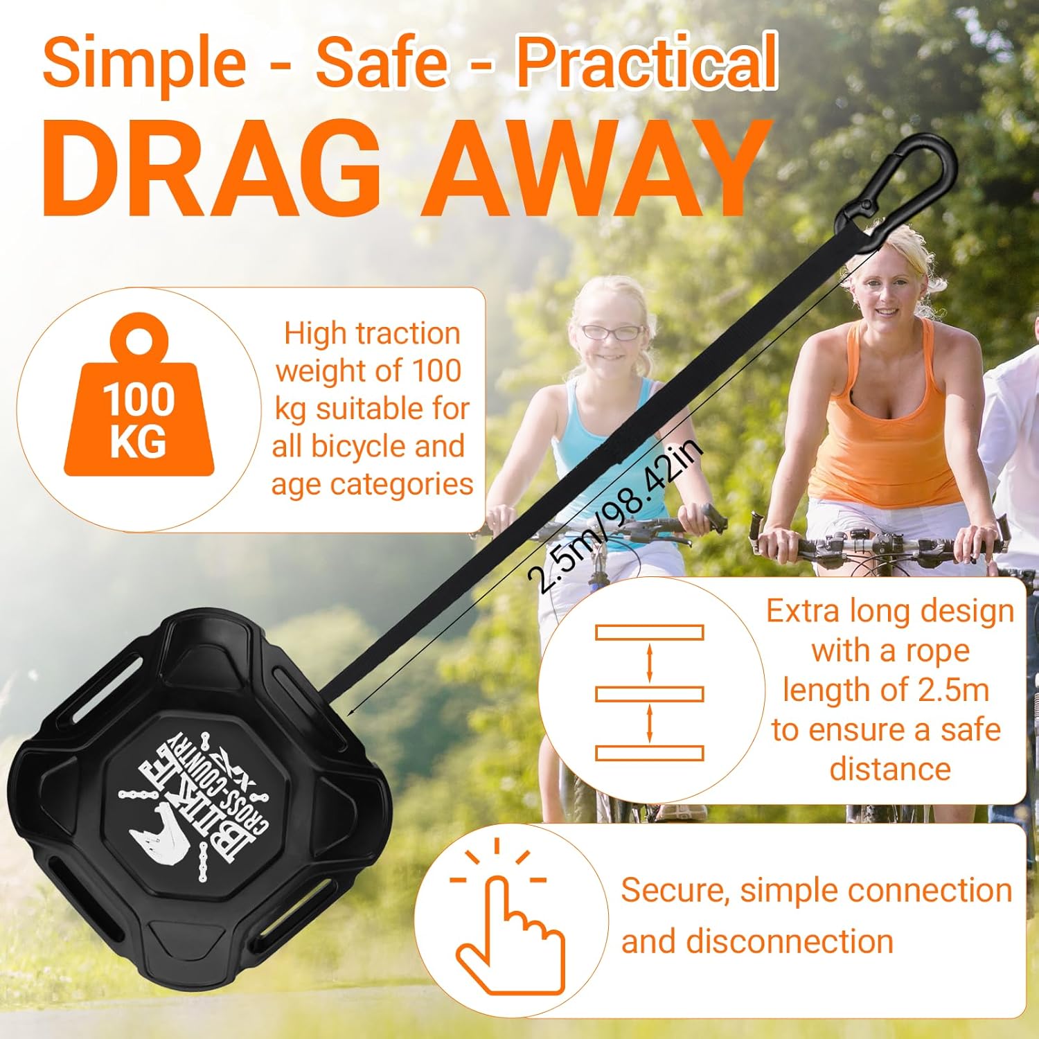 [ALTA QUALITÀ E DUREVOLE] - Questa cintura per fune di trazione per bicicletta è realizzata in nylon di alta qualità e corda elastica. Robusta e durevole, la fune da traino lunga 2,5 metri offre ampio spazio ai ciclisti e garantisce un collegamento affidabile tra le biciclette, garantendo una guida sicura. [INSTALLAZIONE FACILE E VELOCE] - Questa fune di trazione per bambini ha tre metodi di installazione ed è molto facile da installare. Basta installare il guinzaglio sulla sella o sul tubo della ruota sul retro della bicicletta e poi collegarlo al manubrio della bicicletta di tuo figlio per installarlo con successo. [COMPATTO E PORTATILE] - Questo guinzaglio adotta un design semplice e pratico. Il set include una custodia in modo da poterlo riporre quando non lo usi, e il suo design compatto lo rende facile da mettere in uno zaino per un facile trasporto. La tecnologia telescopica automatica può regolare automaticamente la lunghezza in base alle tue esigenze, migliorando notevolmente la comodità d'uso. [GUIDA SICURA] - La cinghia di fissaggio con fibbia di sicurezza di alta qualità non è facile da rompere, può essere installata saldamente sotto la sella della bicicletta per adulti. Anche la testa collegata al manubrio del bambino adotta un design a scatto, che può essere avvolta attorno al manubrio del bambino e fissata. Non è facile cadere, il che garantisce la sicurezza di guida. [AVVENTURA GENITORE-BAMBINO] - Questo guinzaglio per bicicletta è un ottimo accessorio per bicicletta che consente ai tuoi bambini di sperimentare la mountain bike, permettendoti allo stesso tempo di proteggere meglio la sicurezza dei tuoi bambini nel processo. Potrete godervi una piacevole gita in bicicletta con i vostri bambini.