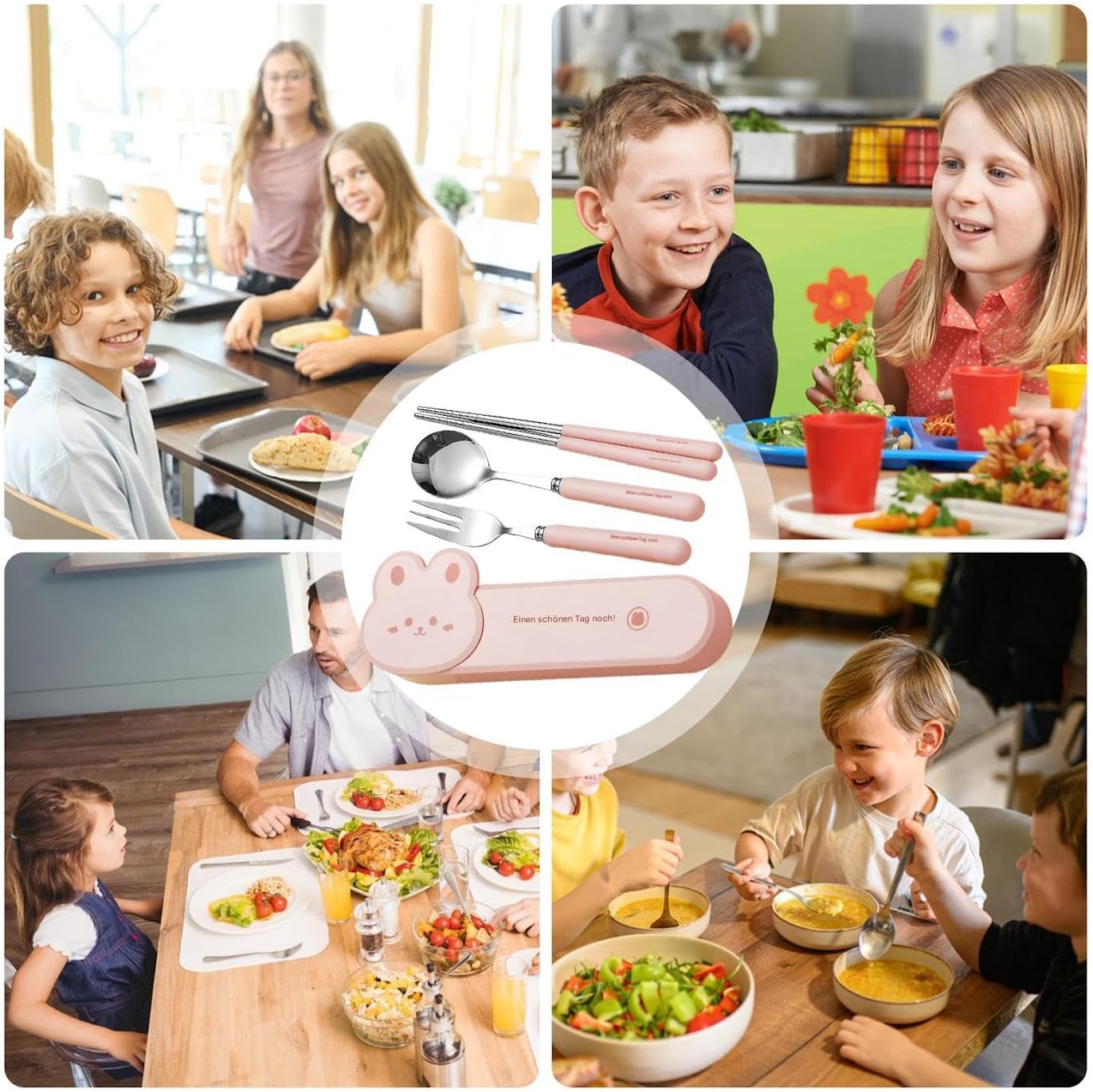 Esperienza alimentare dedicata: gli utensili per il pranzo per bambini offrono divertenti disegni a cartoni animati e colori vivaci che promuovono l'interesse dei bambini e promuovono abitudini alimentari sane durante i pasti scolastici o i picnic in famiglia e promuovono abitudini alimentari sane. Compatto e facile da trasportare: questi accessori da viaggio sono progettati tenendo conto della portabilità, in modo che gli utenti possano indossarli facilmente per pranzi all'aperto o per i pasti degli studenti per garantire una comodità senza ingombro aggiuntivo durante il pendolarismo o l'avventura Igienico – Vantaggio di pulizia: con le sue superfici lisce in acciaio inossidabile, la piscina da viaggio assicura che le particelle di cibo non si attacchino al materiale, consentendo agli utenti di sciacquare facilmente i residui e mantenere la pulizia senza sforzo. Perfetto per viaggi in campeggio o picnic in cui l'accesso a una pulizia completa è limitato Scatola di immagazzinaggio antipolvere: il set di cinture da viaggio include una scatola di immagazzinaggio a prova di polvere per mantenere le stoviglie pulite e pronte per pranzi scolastici, pasti in famiglia o attività all'aperto per garantire