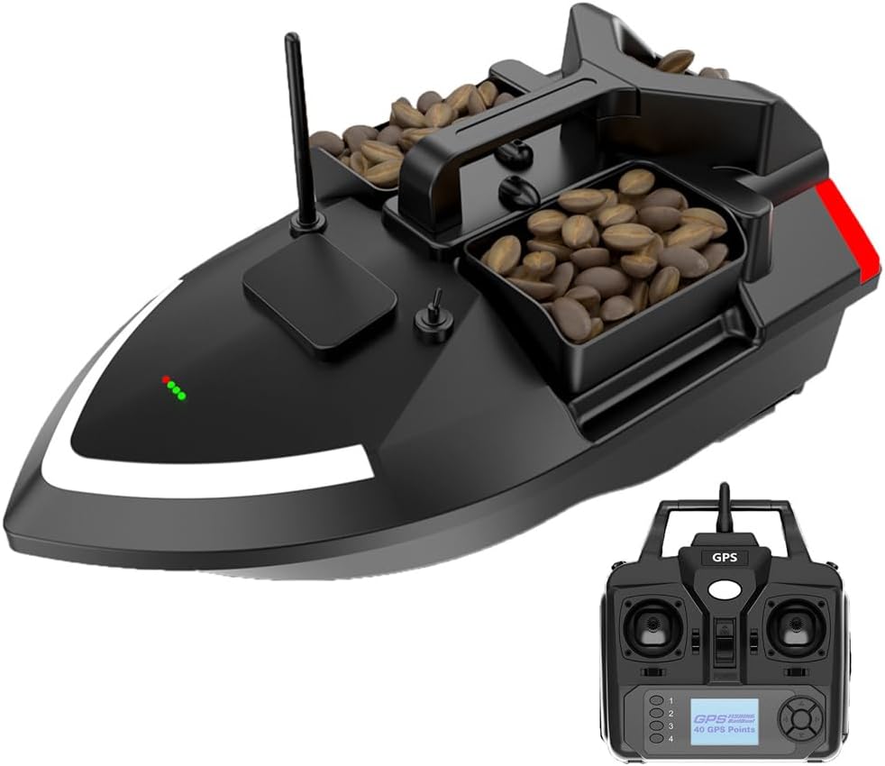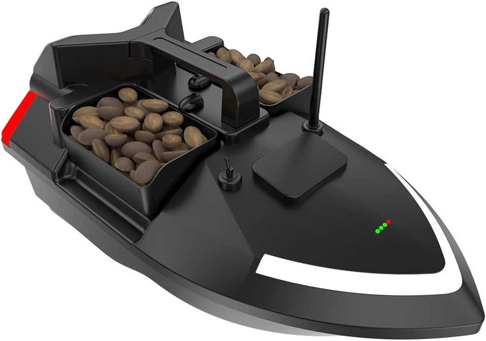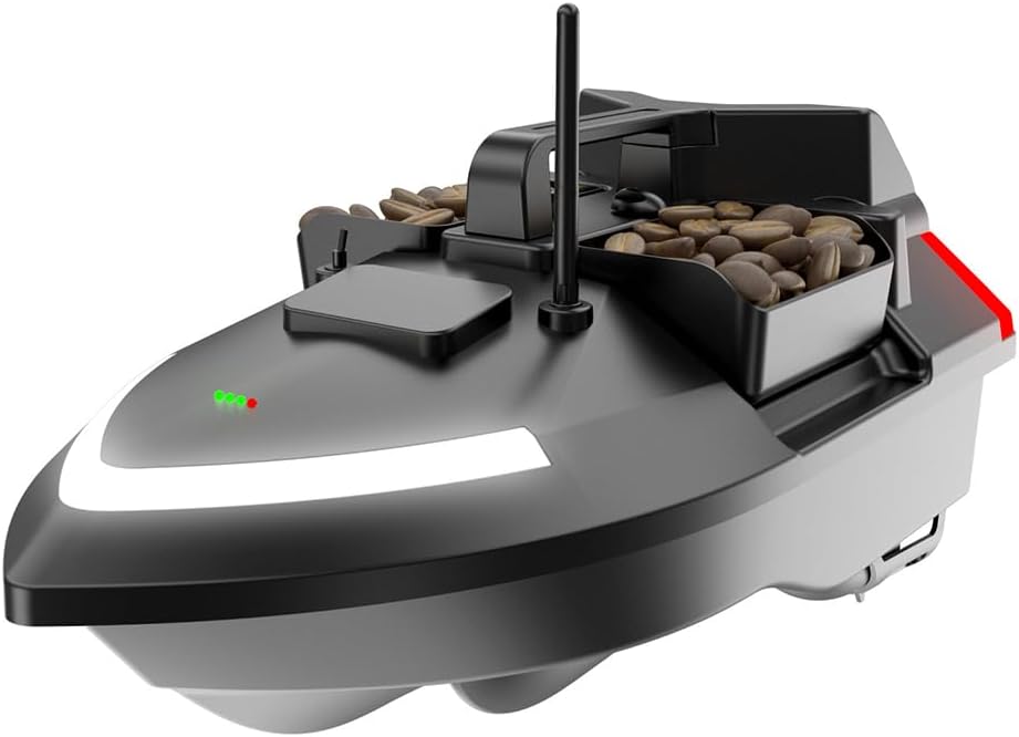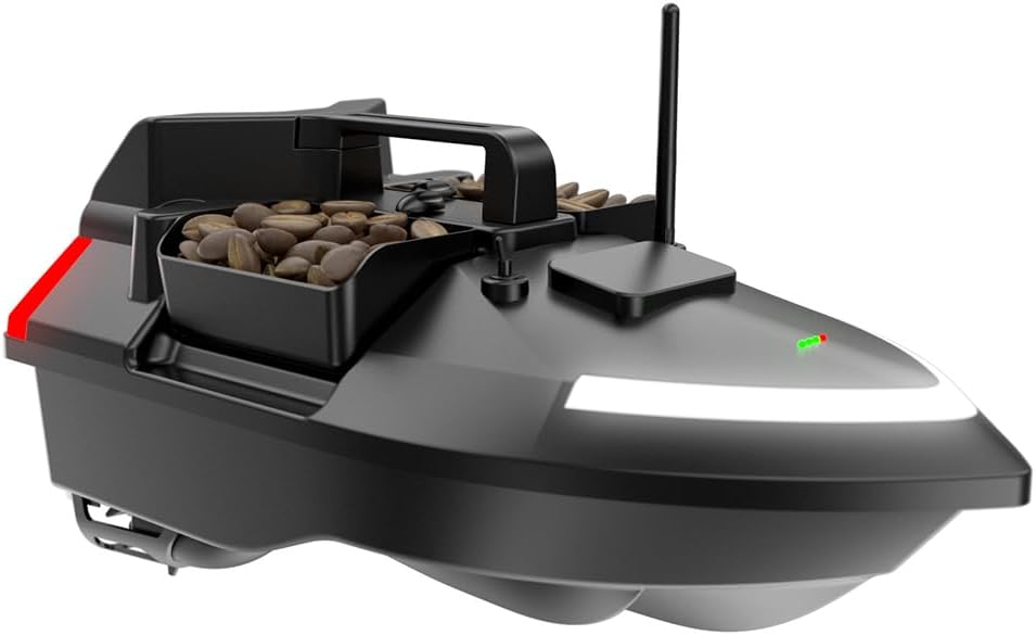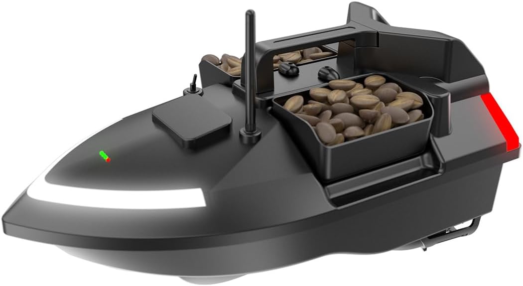 Controllo multifunzione con sterzo di precisione: goditi il controllo completo con avanti/indietro, rotazione sinistra/destra e un sistema di rilascio a gancio integrato. La barca è dotata di tre tramogge di esca controllate in modo indipendente e luci LED luminose, perfette per la pesca notturna. Perfetto per una consegna accurata dell'esca e pesca strategica. Navigazione intelligente per crociera e ritorno automatico: dotato di crociera a velocità costante, il sistema include anche crociera a un tasto, ritorno a un tasto, ritorno batteria scarica, ritorno della perdita di segnale e feedback sulla distanza in tempo reale, garantendo che la tua barca naveggi in modo affidabile e ritorni in sicurezza in qualsiasi condizione. Sistema di posizionamento avanzato GPS e Beidou: utilizza il sistema di calibrazione intelligente Beidou e memorizza fino a 40 waypoint GPS per una navigazione ripetibile e a mani libere attraverso i punti di pesca noti. Ciò migliora la pianificazione e l'efficienza del percorso, specialmente in aree acquatiche grandi o complesse. Potente sistema di illuminazione per visione notturna: dotata di proiettori a LED anteriori e posteriori ad alta intensità, insieme a luci di segnalazione direzionali, questa barca da esca garantisce una visibilità ottimale e una consapevolezza direzionale in condizioni di scarsa illuminazione o di pesca notturna. Prestazioni robuste e interfaccia di visualizzazione intelligente: costruita per gestire vento e onde fino alla forza 7-8, questa barca offre stabilità e resilienza superiori in acque agitate. Lo schermo LED integrato fornisce aggiornamenti di stato in tempo reale, semplificando il monitoraggio delle operazioni e delle impostazioni a colpo d'occhio.