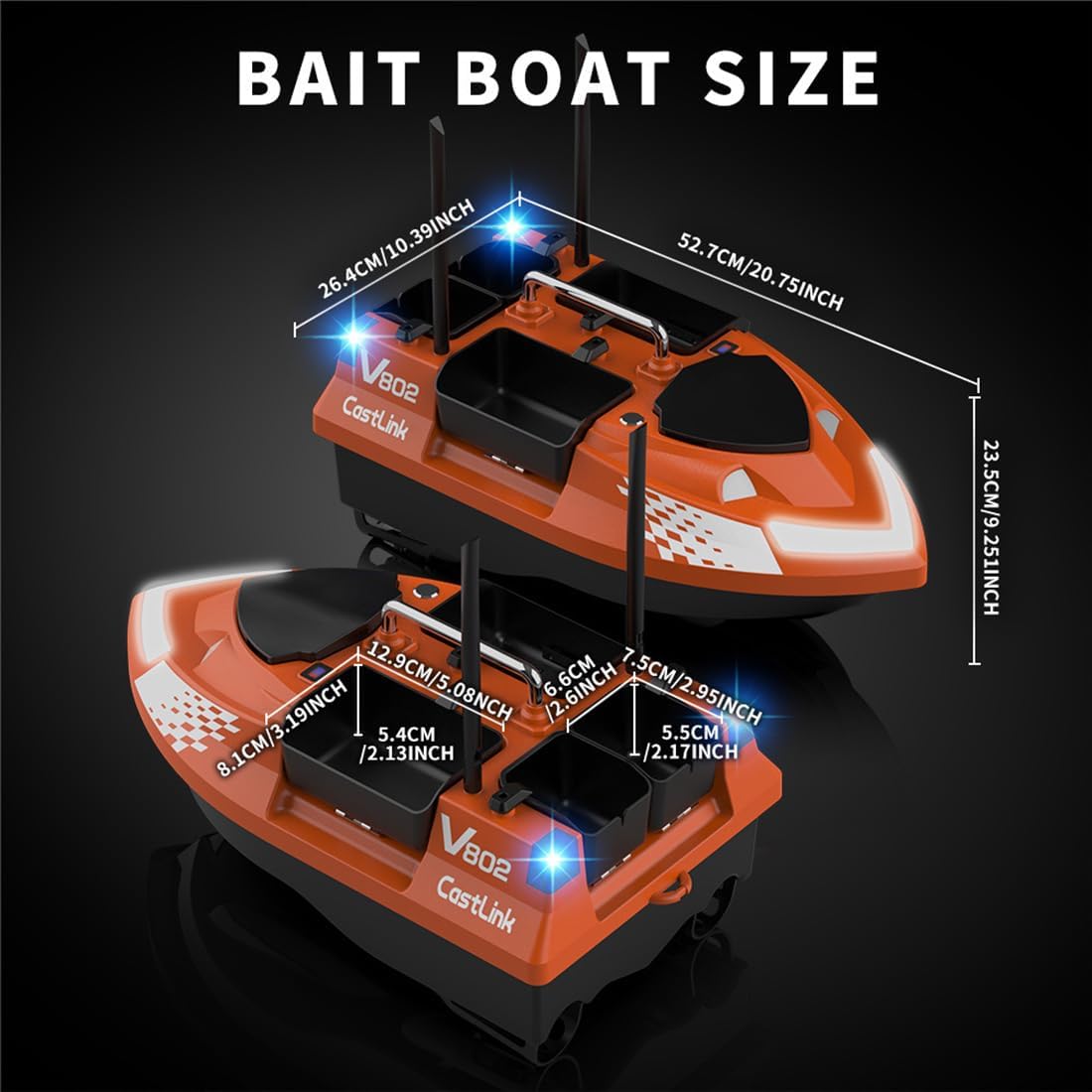 Esche efficienti e precise: lancia l'esca esattamente dove necessario con quattro tramogge indipendenti da 3 kg, ideale per la pesca alla carpa o per più nuotate in un solo viaggio Batteria a lunga durata: la batteria ad alta capacità da 7,4 V 5200 mAh offre una durata prolungata della batteria e il design a doppio cavo di alimentazione consente il collegamento di due batterie Cruise Control: imposta la modalità di crociera a velocità costante e fornisci una portata del segnale affidabile fino a 500 m con il sistema di antenna a doppio guadagno elevato Correzione automatica del percorso: giroscopio integrato per la correzione automatica dell'imbardata, garantendo movimenti fluidi e precisi sotto il vento/onde e il carico Funzionalità di pesca notturna: le luci anteriori a LED ad alta potenza (modalità fissa/lampeggiante) e gli indicatori posteriori consentono di esca e navigare dopo il tramonto con facilità