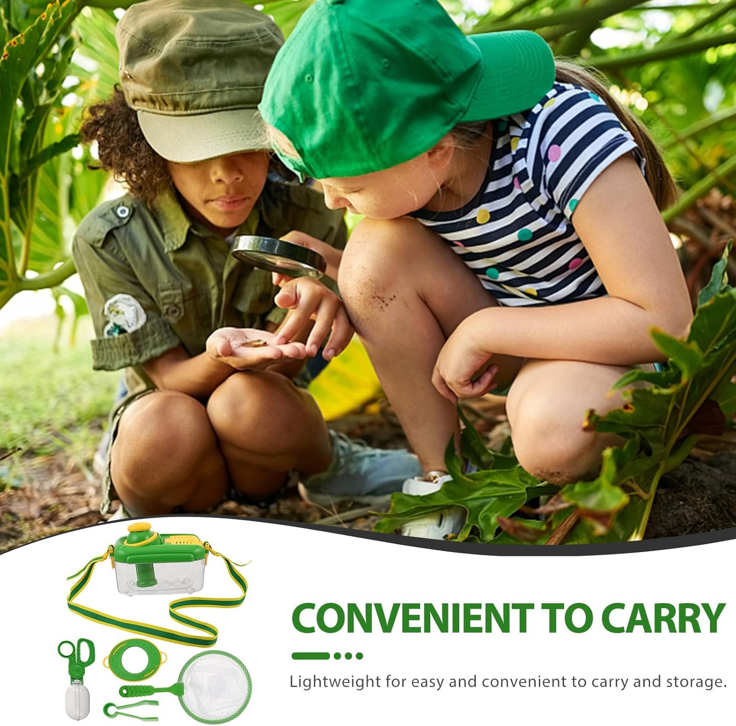 Leggero e portatile: progettato con materiali leggeri, questo kit habitat per insetti è facile da trasportare per i bambini, rendendo divertente l'esplorazione all'aperto Finestra di osservazione trasparente: presenta una finestra di osservazione trasparente combinata con fori di ventilazione, consentendo ai bambini di osservare gli insetti da vicino garantendo al contempo le loro esigenze di sopravvivenza Divertimento con i giochi di ruolo: include strumenti professionali per la cattura di insetti per ispirare i bambini a giocare di ruolo come esperti di insetti, migliorando la loro curiosità scientifica e le loro abilità sociali Per attività in famiglia: ideale per rafforzare i familiari, lezioni scolastiche sulla natura o gite in campeggio, incoraggiando l'interazione genitore-figlio e rendendo l'apprendimento piacevole Facile da pulire e riporre: progettato per una facile pulizia e conservazione, questo kit aiuta i bambini a sviluppare buone abitudini mentre si godono l'emozione dell'esplorazione all'aria aperta