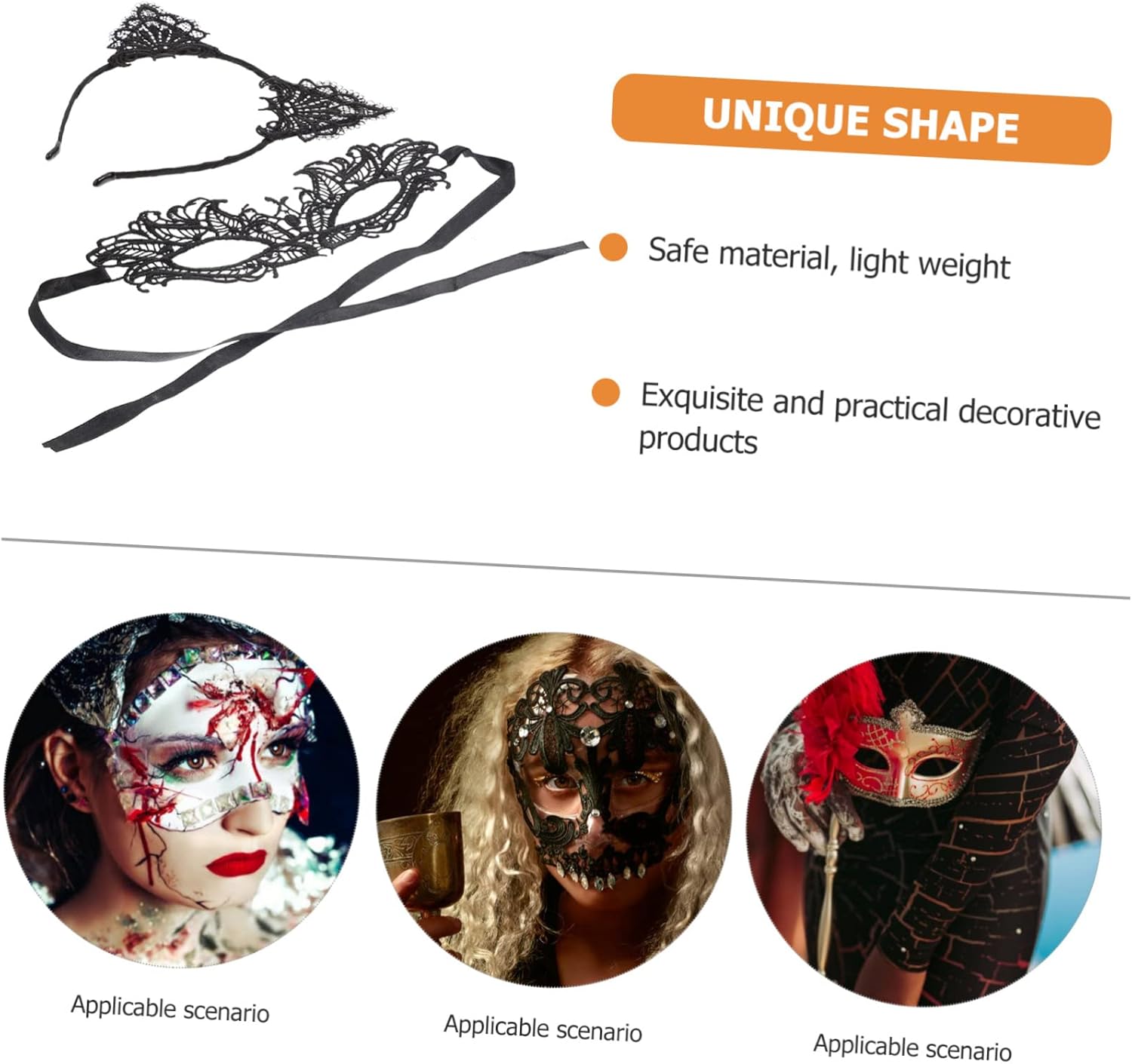 La confezione include 1 fascia per capelli 1 maschera Caratteristiche -dimensioni: 19,00x17,50x0,50 cm, 21,50x11,00x0,50 cm;/7,47x6,88x0,20 pollici, 8,45x4,32x0 copricapo chic. -materiale: benda sull'occhio in tessuto cosplay -colore: accessorio per capelli -ampia gamma di applicazioni, design raffinato, si abbinerà al resto della decorazione degli occhi delle tue donne. - Realizzato in materiale sicuro, alla moda e resistente da indossare, un buon copricapo per sorprendere i tuoi amici! Maschera per gli occhi in pizzo - ideale per Halloween e altri eventi, come feste in maschera, festival musicali, cosplay, spettacoli di danza, carnevale, oggetti di scena televisivi, ecc. - Può essere utilizzata anche per balli da ballo, balli nuziali, una bella scelta decorativa che si abbina alla maggior parte degli stili di abiti con bende in pizzo. - adatto per le feste di Halloween, offre una buona protezione e un look accattivante per la maggior parte dei cerchi cosplay per adulti e adolescenti. descrizione della merce decorazioni per capelli le scene applicabili non sono limitate ed è comodo da indossare. Maschera per gli occhi realizzata in materiale sicuro, questa maschera per gli occhi e i capelli sono resistenti e pratici, con un design dall'aspetto in pizzo, adatta per costumi in maschera, carnevale, Halloween, banchetti, festival, ecc.