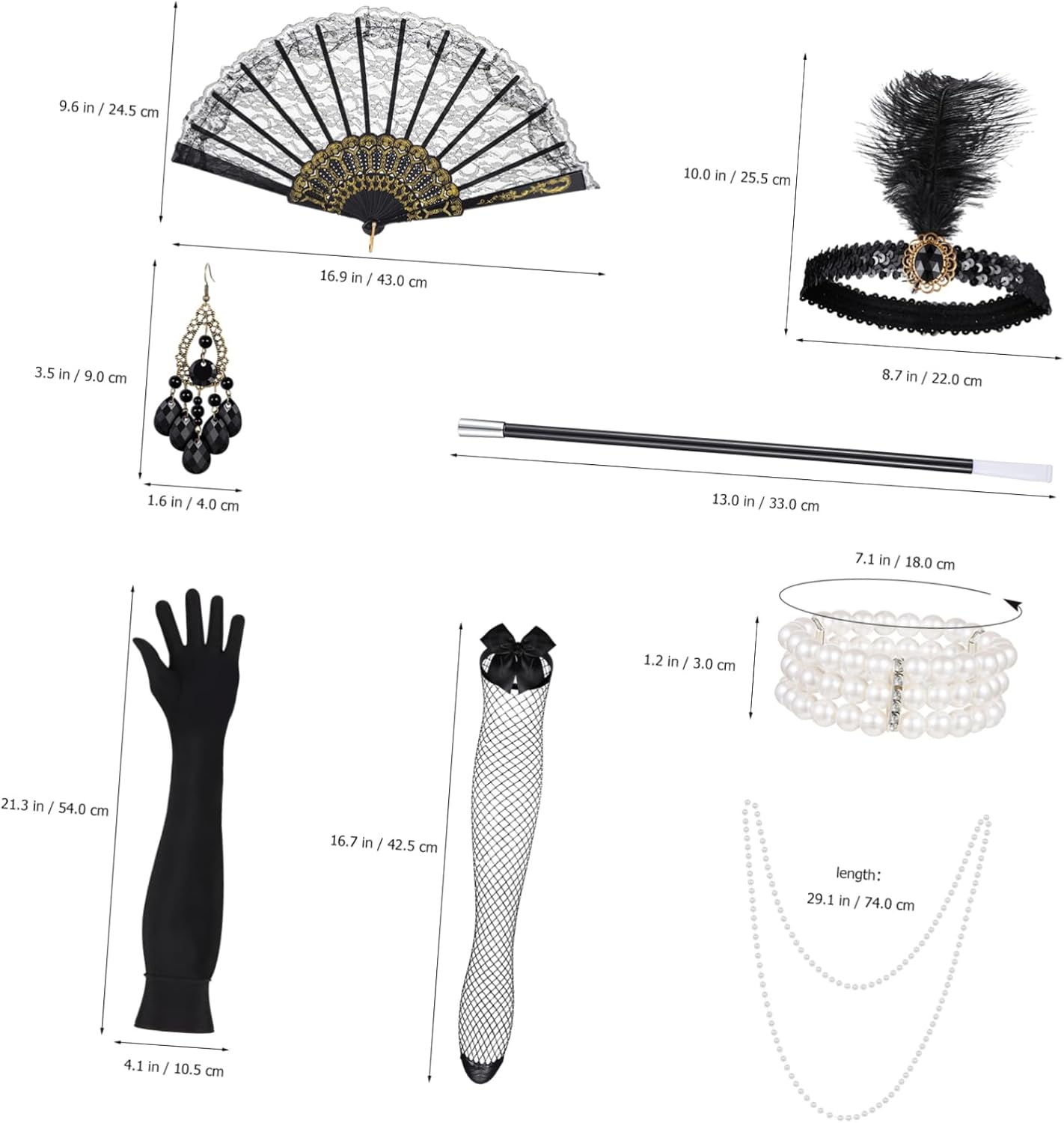 lista dei 1 x fascia per 1 x collana 1 paio di guanti 1 x braccialetto 1 paio di orecchini 1 x ventaglio di pizzo 1 paio di calze di seta 1 x caratteristiche - stile : accessori per costumi in stile vintage, principalmente neri e di , che ti rende la seta più elegante. - misura universale: elastico e flessibile, può adattarsi alla maggior delle persone di taglia normale, le donne possono indossarli comodamente senza pesi aggiuntivi. Braccialetti di perle da donna. - : come mostrato copricapo vintage da donna. - dimensione: 5400x1050x020cm/2122x413x008in collana di perle. - unico: regala questo set alle amiche e aggiungi un fascino molto più elegante e ai loro orecchini pendenti. - ampia applicazione: adatta a molti tipi di occasioni, come tea party pomeridiano, cocktail party, feste a tema anni '20, matrimoni e altre calze di seta da donna. - accessori straordinari: i nostri guanti, fascia per , collana di perle, bracciale, orecchini, sufficienti per decorare tutto il tuo outfit. Braccialetti rigidi da donna. - materiale: plastica, poliestere, acrilico, fascia in lega. informazioni sulla merce copricapo da ballo il nero e il pizzo ti faranno sembrare elegante e alla moda, con una sensazione di fascino e , adatto per occasioni come tea party, matrimoni, cocktail party, ecc. fasce per questa squisita fascia, guanti , calze e altri kit di gioielli sono belli e squisiti, possono dare tuo aspetto e decorazioni accattivanti