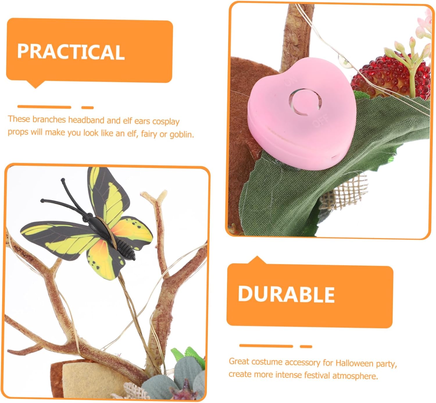 Orecchie da fata: ampie applicazioni, adatte per cosplay, halloween, spettacoli, feste in costume, ecc. Fasce per capelli da donna: aggiungeranno sicuramente drammaticità al tuo costume e sono abbastanza comode da indossare tutto il giorno. Fascia per capelli in corno di cervo: evidenzia il tuo aspetto, renditi più affascinante e accattivante. Fascia per capelli in corno di alce: questa fascia per capelli e gli accessori cosplay con orecchie ti faranno sembrare una fata. Fasce per il trucco: adottate in materiale, sono pratiche e resistenti per un uso prolungato, non facili da deformare e strappare.