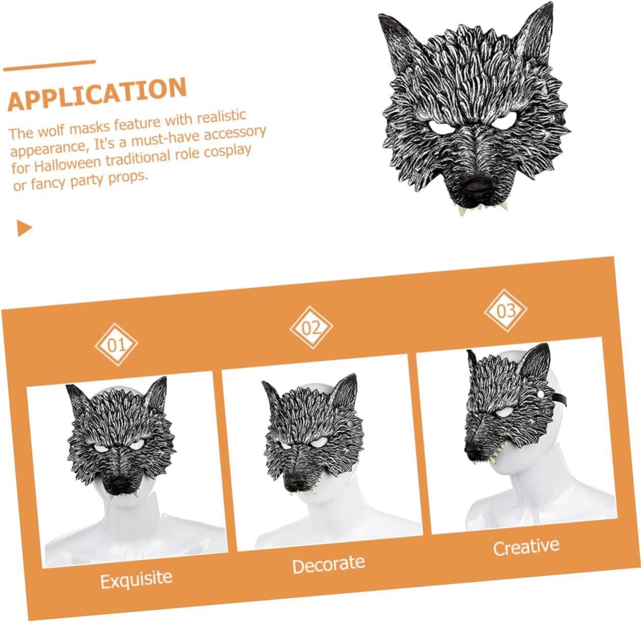 La confezione include 5 maschere da lupo. Caratteristiche: dimensioni: 25,00x21,00x5,00 cm/9,82x8,25x1 maschera da lupo mannaro. - materiale: maschera cosplay a mezza faccia in pu - colore: mezza maschera - perfetto per giochi, spettacoli teatrali, giochi di ruolo, feste in maschera e così via maschera cosplay di Halloween. - Con la forma del viso di lupo, è creativo e divertente, attira facilmente l'attenzione della folla. - la semimaschera non pregiudica la respirazione. non copre la bocca, anche se sembra essere un oggetto di Halloween. - cinturino elastico per la maggior parte delle taglie. ideale da indossare per i tuoi bambini. Adorerebbero moltissimo questa maschera cosplay. - Ottimo per la fotografia e può essere un ottimo regalo per i tuoi amici e gli oggetti di scena per cosplay dei tuoi bambini. informazioni sulla merce cosplay che vorrebbero riceverla. La metà del cosplay è accattivante e sembra divertente, il che è comodo da indossare. e ha un design a mezza faccia. Centrotavola arcobaleno, l'aspetto divertente lo rende un regalo per i tuoi bambini e amici.