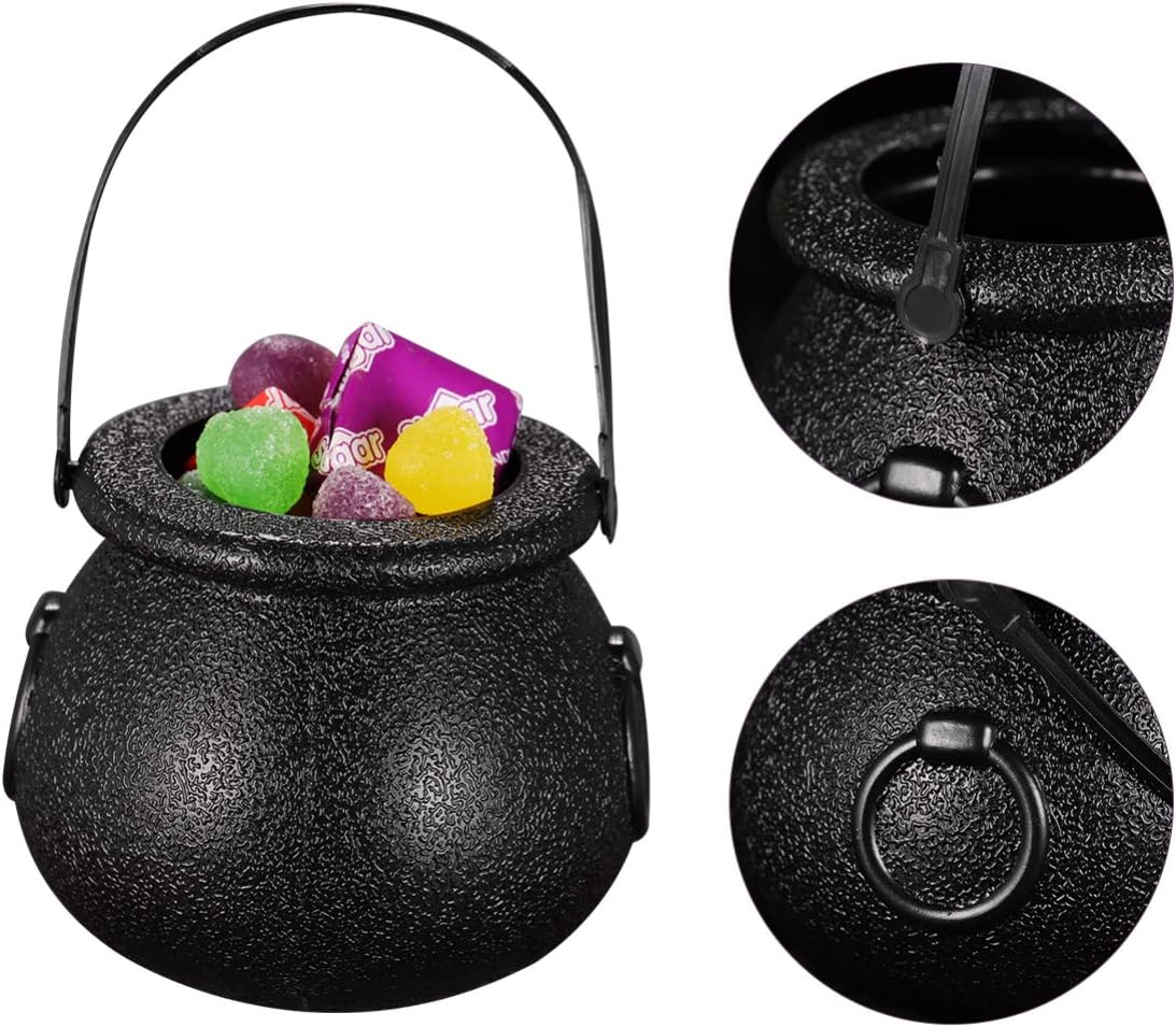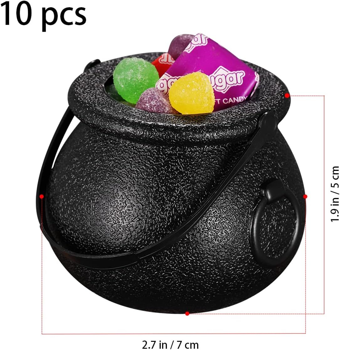 Secchiello per caramelle di Halloween in plastica, atossico e testato per garantire la sicurezza. Calderone delle streghe nero dimensioni 5x7x7 cm, piccolo calderone adatto per contenere caramelle durante Halloween e Natale. Il calderone delle streghe di Halloween è il modo più perfetto per contenere e conservare dolcetti e caramelle nella ciotola di caramelle di Halloween. Piccolo calderone delle streghe per Halloween, Natale e feste di compleanno, puoi mettere piccoli giocattoli, monete di alluminio, caramelle, alcune prelibatezze divertenti e cioccolato dorato nel calderone di plastica. Dimensioni perfette per trasportare un vaso di caramelle per dolcetti o scherzetti di Halloween, inoltre puoi praticare alcuni fori extra sul fondo e usarlo come fioriera da giardino.