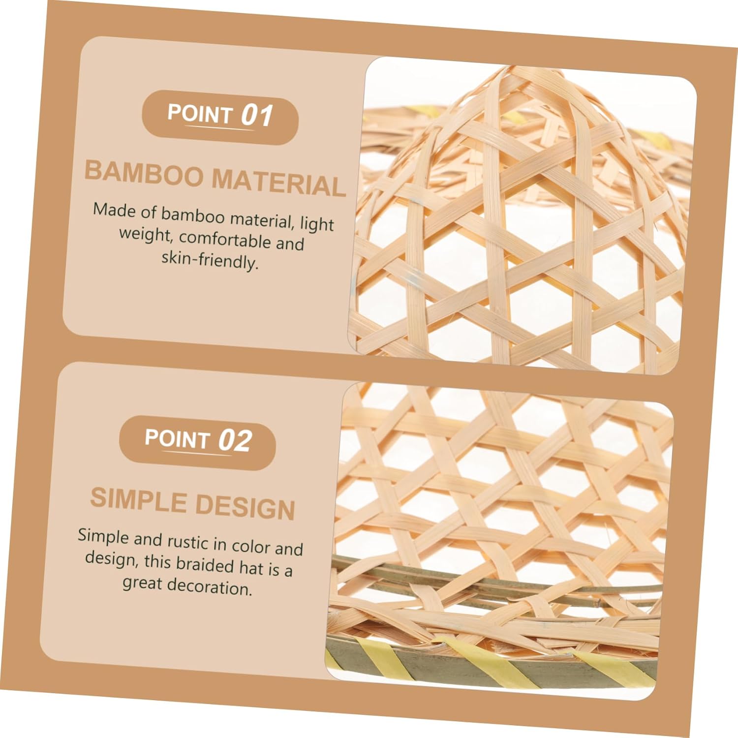 elenco dei pacchetti 1 x caratteristiche del cappello - colore: come mostrato cappello - materiale: cappelli - dimensioni: 38,00 x 38,00 x 11,00 cm/14,93 x 14,93 x 4,32 pollici cappelli intrecciati - realizzato in materiale, questo cappello intrecciato è comodo e delicato sulla pelle, puoi sicuramente avere un'esperienza migliore indossando un cappello tradizionale. - Colore semplice e rustico, questo cappello intrecciato è un buon accessorio quando si prepara un antico cappello cinese da spettacolo. - Questo cappello da spettacolo sul palco può sicuramente aggiungere più gioia al tuo festival e può essere un buon cappello da ballo accessorio per cosplay. – può essere ampiamente utilizzato per feste, celebrazioni, Capodanno, carnevale, cosplay, spettacoli di danza, si adatta alle tue esigenze di cappello intrecciato. - Leggero e di dimensioni compatte, il cappello intrecciato aggiunge molto peso al tuo cappello cosplay, facile da indossare e da togliere. informazioni sul prodotto cappello cosplay Questo è un cappello da spettacolo teatrale con un design a struttura intrecciata, che è allo stesso tempo creativo ed elegante. Cappello cinese che utilizza materiali con lavorazione dettagliata, questo accessorio per cappelli da festa è molto comodo da indossare, porta te e i tuoi familiari. tra amici più gioia, aggiungi anche più atmosfera festosa