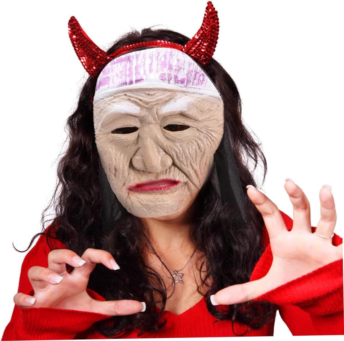 Elenco dei pacchetti 1 x maschera Caratteristiche - Materiale: vinile Accessori per costumi di Halloween. - colore: maschere in lattice spaventose viola. - Dimensioni: circa 24,5x20x0,2 cm/9,65x7,87x0,79 pollici maschere cosplay. - ti aiuta a creare un look in costume speciale. distinguersi dalla maschera della festa creativa. - è una semimaschera elegante e raffinata. bel lavoro con maschere di Halloween decorative dall'aspetto attraente. - la taglia adatta alla maggior parte delle persone, comoda da indossare con le maschere da vecchia signora. - per feste in maschera, spettacoli, Natale, feste in maschera, Halloween, ecc. - un ottimo accessorio per una festa in maschera per creare un'atmosfera emozionante e misteriosa. Informazioni prodotto Halloween per adulti Ottimo accessorio per costumi per portare più entusiasmo alla festa. Maschere da strega di Halloween dal design spaventoso, lavorazione delicata, comode da indossare e inodore. Scegli una maschera da vecchia signora per creare una festa memorabile. .vecchia strega, questo articolo è realizzato con materiale di alta qualità per un uso durevole e duraturo
