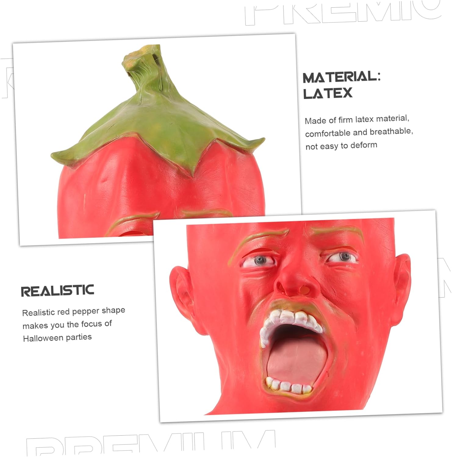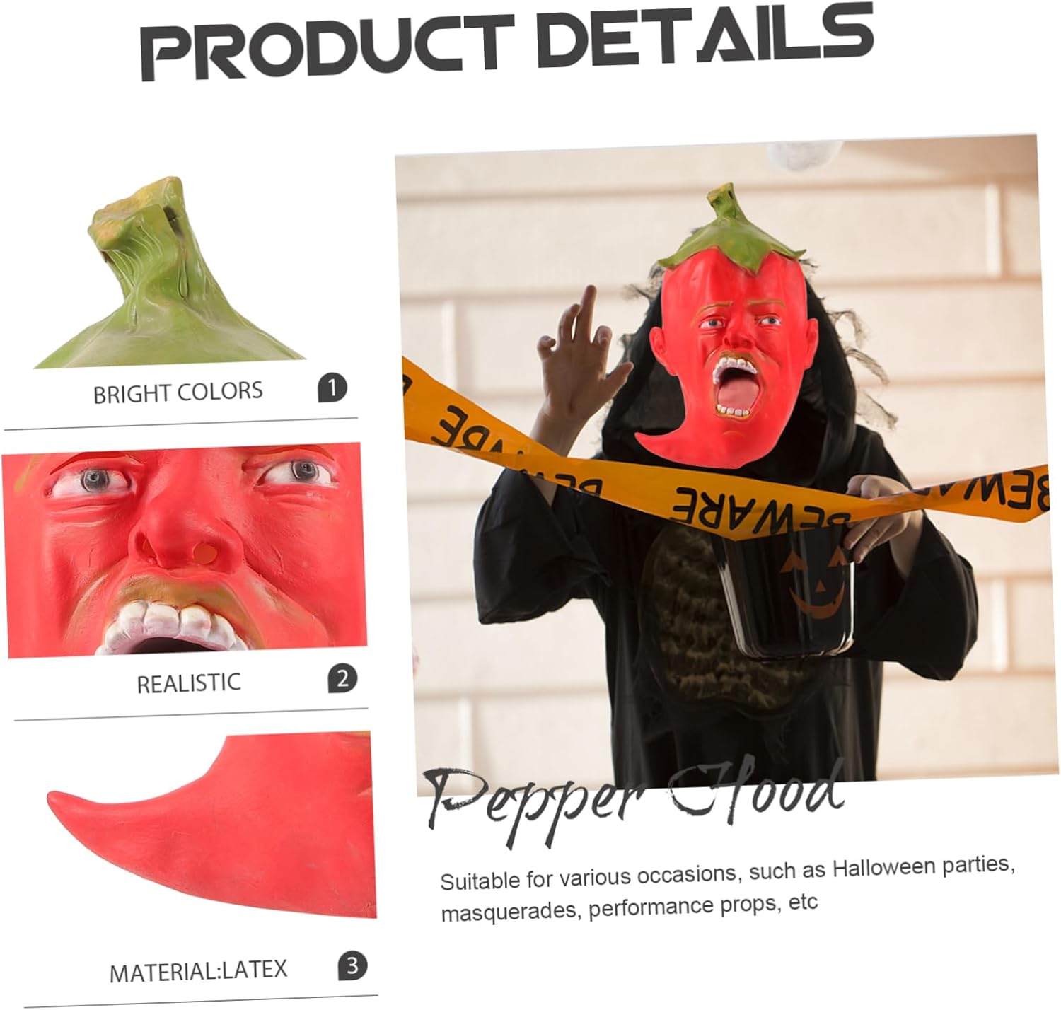 La confezione include 1 x Caratteristiche - Materiale: maschere a pieno facciale di Halloween - Colore: mostrati divertenti costumi di Halloween - Dimensioni: 42,00 x 30,00 x 1,00 cm/16,51 x 11,79 x 0 per feste in maschera. - costruito con materiale resistente, comodo da indossare e non facilmente deformabile. - Il copricapo a forma di pepe è per feste di Halloween e mascherate di Halloween. - Il design unico ti rende al centro dell'attenzione in qualsiasi evento di festa. Maschere per feste di Halloween. - lavorazione squisita, struttura ragionevole, professionale e pratica, possono offrirti una comodità divertente. - adatto sia per adulti che per bambini, un accessorio indispensabile per ogni festa in costume realistica. Descrizione degli articoli horror di Halloween Il prodotto è un Halloween che può offrirti più comodità, permettendoti di avere un ambiente più confortevole. maschere spaventose per adulti senza essere facilmente danneggiate. Accessorio per costume di Halloween Questo prodotto è un Halloween, realizzato con materiali resistenti, sicuri e durevoli