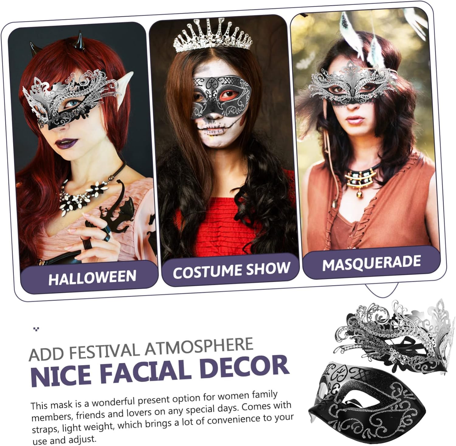 Elenco dei pacchetti 1 × Caratteristiche maschera in maschera - Dimensioni: 20,00x10,00x0,20 cm/7,86x3,93x0,08 pollici Decorazione maschera per festa in costume - Materiale: metallo, plastica Maschera per mascherata di Halloween - Questa maschera con questa maschera di Halloween che ti fa distinguere dalla massa. - una maschera decorativa per feste adatta a feste in maschera, night club, feste in bar, ecc., accessorio per maschera di Halloween. - Una meravigliosa maschera cosplay per donne e ragazze per Halloween, carnevale, ballo in maschera, ballo in maschera, ecc. - Ottima decorazione per scattare foto con famiglie e amici, mezza maschera per donne. - puoi indossarlo alla tua festa, che sia Halloween per divertirti in maschera. descrizione del prodotto maschera decorativa adottata, questo articolo è per te in molte occasioni. Forniture di Halloween creative, accattivanti, durevoli, decorative e misteriose, quello che vuoi per una mezza maschera è qui. Maschera per travestimento alla moda e di design, è molto adatta per la tua collocazione di abbigliamento