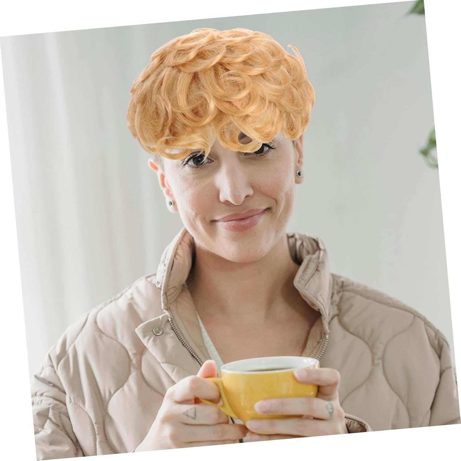 Elegante: il colore elegante è alla moda e accattivante, aggiungendo un tocco alla moda tuo stile, parrucche corte per donne nere, parrucche per da donna I riccioli ondulati forniscono un aspetto morbido e femminile, esaltando la tua bellezza generale, parrucche da festa per donne, parrucca riccia Aspetto realistico: realizzata con umani, questa parrucca offre un aspetto realistico, dandoti un'acconciatura naturale che fonde perfettamente con i tuoi , parrucca nera e corta e riccia Texture realistica: realizzata con umani, questa parrucca offre una texture realistica e un aspetto naturale, fondendosi perfettamente con i tuoi , parrucca corta, parrucca da donna soffice Texture realistica: realizzata con umani, questa parrucca offre una consistenza e un aspetto realistici, garantendo un aspetto naturale, finti, parrucca per cosplay