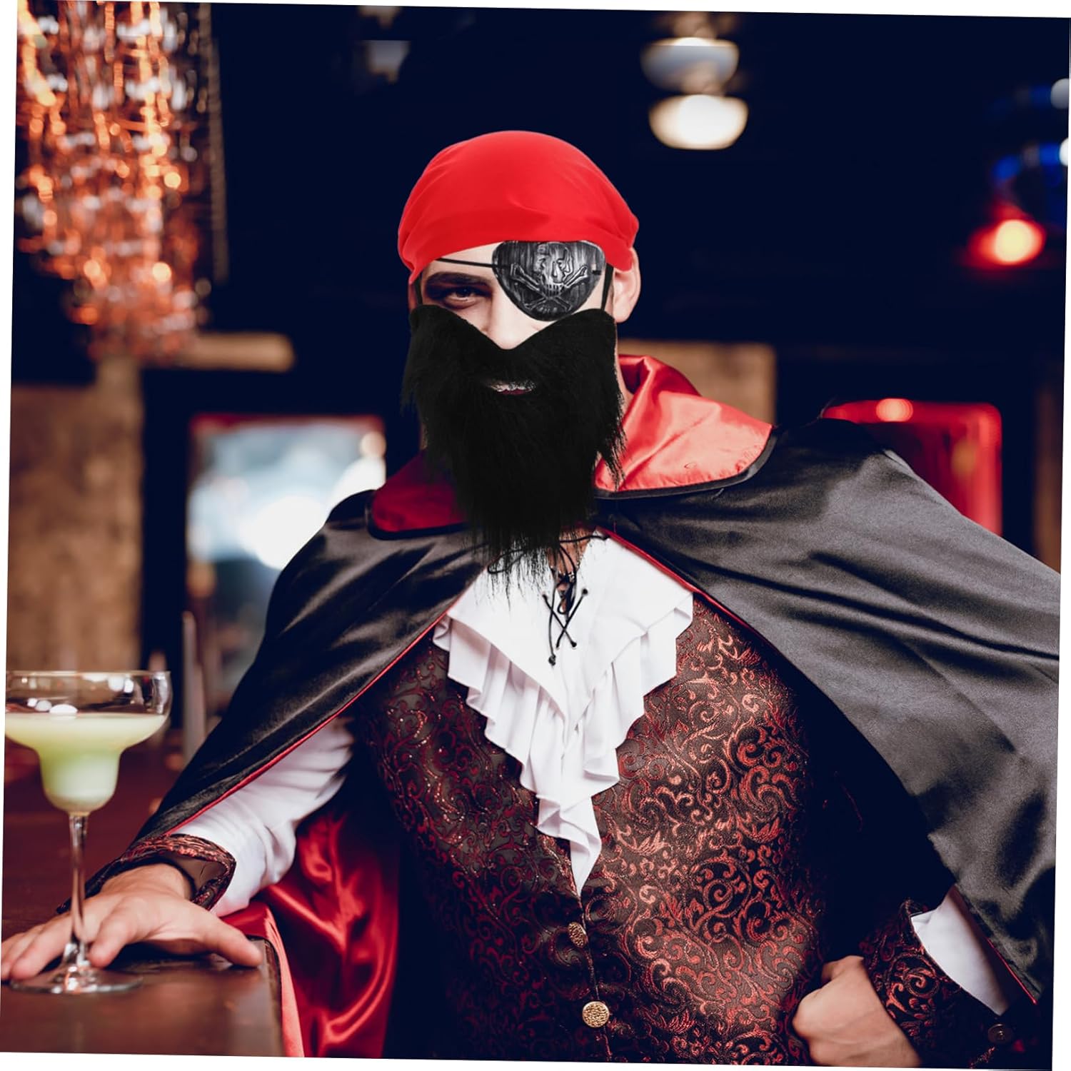 Completo: il set include baffi da pirata, una benda sull'occhio e una fascia per capelli, che consente una semplice trasformazione in uno spadaccino, accessori per cosplay da pirata, accessori per costumi di Halloween Tanta praticità: questo set include baffi, una benda per l'occhio e una fascia per capelli, fornendo una soluzione completa per le tue esigenze in costume da pirata, barba finta da pirata, accessori per Halloween Stile da pirata: trasforma il tuo aspetto con questo set di accessori, ideale per quel look da pirata durante Halloween, decorazioni Bomboniera a tema pirata, un'esibizione di accessori da pirata Ultimate Party Starter: Distinguiti in qualsiasi evento di Halloween con Questo set di accessori da pirata trasforma istantaneamente il tuo look in quello di un pirata, barba da pirata e decorazione per la testa da pirata. Abito essenziale per Halloween: preparati per la tua festa di Halloween con questo sorprendente set di accessori da pirata progettato per rubare la scena, baffi da pirata imitati, baffi da pirata cosplay.