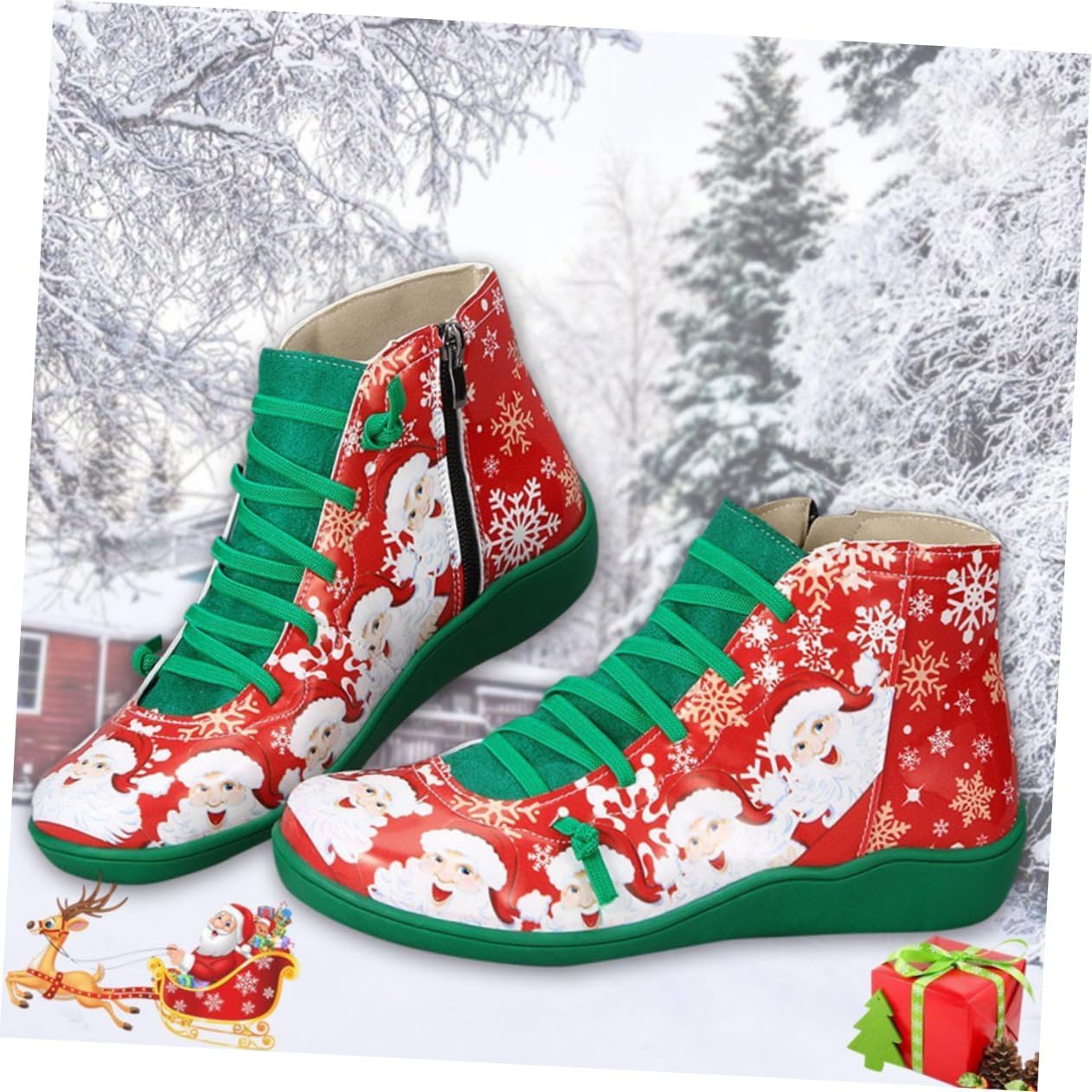 dei pacchetti 1 paio di scarpe Caratteristiche - Taglia 41: circa 25,5 cm, 8,5 US, 6 UK, 40 EU, 10,0215 pollici per stivali da donna. - Taglia 37: circa 23,5 cm, 6,5 US, 4 UK, 37,5 EU, 9,2355 pollici per stivaletti da donna. - Taglia 40: circa 25,0 cm, 8 US, 5,5 UK, 39 EU, 9,8 pollici. Stivaletti invernali da donna. - Materiale: stivali natalizi da donna in PU artificiale. - Taglia 38: circa 24,0 cm, 7 US, 4,5 UK, 38 EU, 9,432 pollici per stivali da donna. - Taglia 36: circa 23,0 cm, 6 US, 3,5 UK, 36,5 EU, 9,039 pollici per scarpe da donna. - Taglia 42: circa 26,0 cm, 9 US, 6,5 UK, 40,5 EU, 10,2 pollici per stivali da donna. - Taglia 43: circa 26,5 cm, 9,5 US, 7 UK, 41 EU, 10,4145 pollici stivali invernali da donna. - Taglia 39: circa 24,5 cm, 7,5 US, 5 UK, 38,5 EU, 9,6285 pollici stivali corti da donna. - Il grazioso design con elementi natalizi renderà le tue scarpe da donna ancora più e delicate. - Perfetti per spettacoli teatrali, feste in maschera, feste di Natale, banchetti, esibizioni, ecc., graziosi stivali da donna. - per l'autunno e l'inverno. Possono essere un anche per le tue amiche, scarpe natalizie. - Puoi indossare queste scarpe a Natale per aggiungere un'atmosfera festosa, ma puoi anche indossarle nella vita di tutti i giorni con gli stivali da neve da donna. Descrizione della merce scarpe natalizie Non adatte da indossare a Natale per creare un'atmosfera festosa, ma anche molto adatte per l'uso quotidiano. scarpe da donna Le scarpe sono realizzate in materiale PU artificiale, comode, traspiranti e non-. scarpe natalizie Il classico design a tema natalizio ti renderà più affascinante e attraente