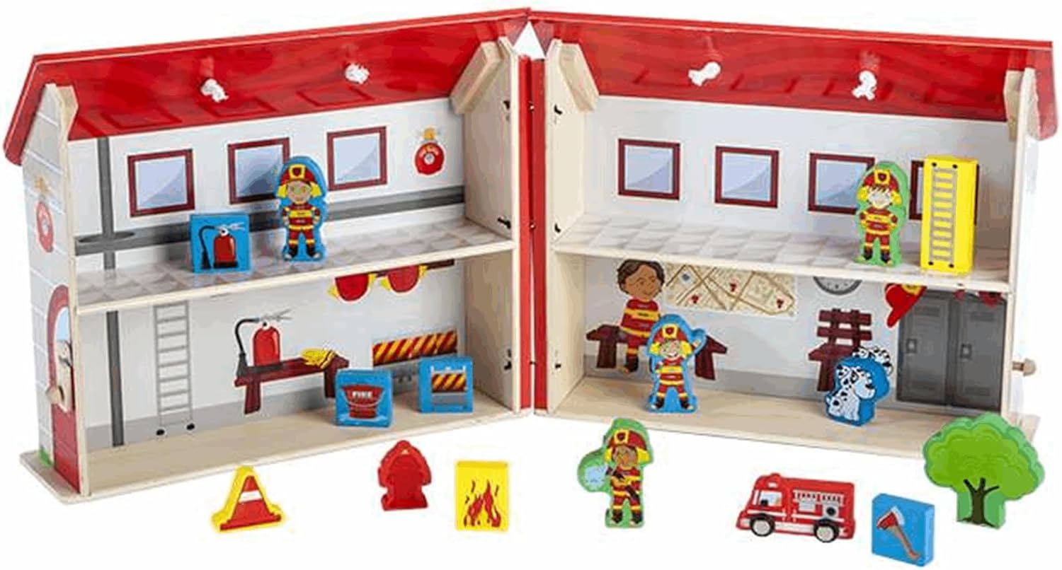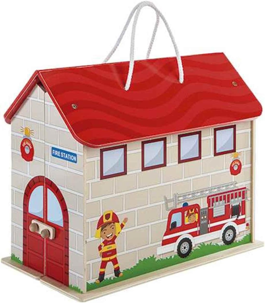 Gioca ovunque con la casetta in legno, questi sono blocchi educativi sul tema dei vigili del fuoco. Tieni tutto dentro! Comode maniglie per il trasporto