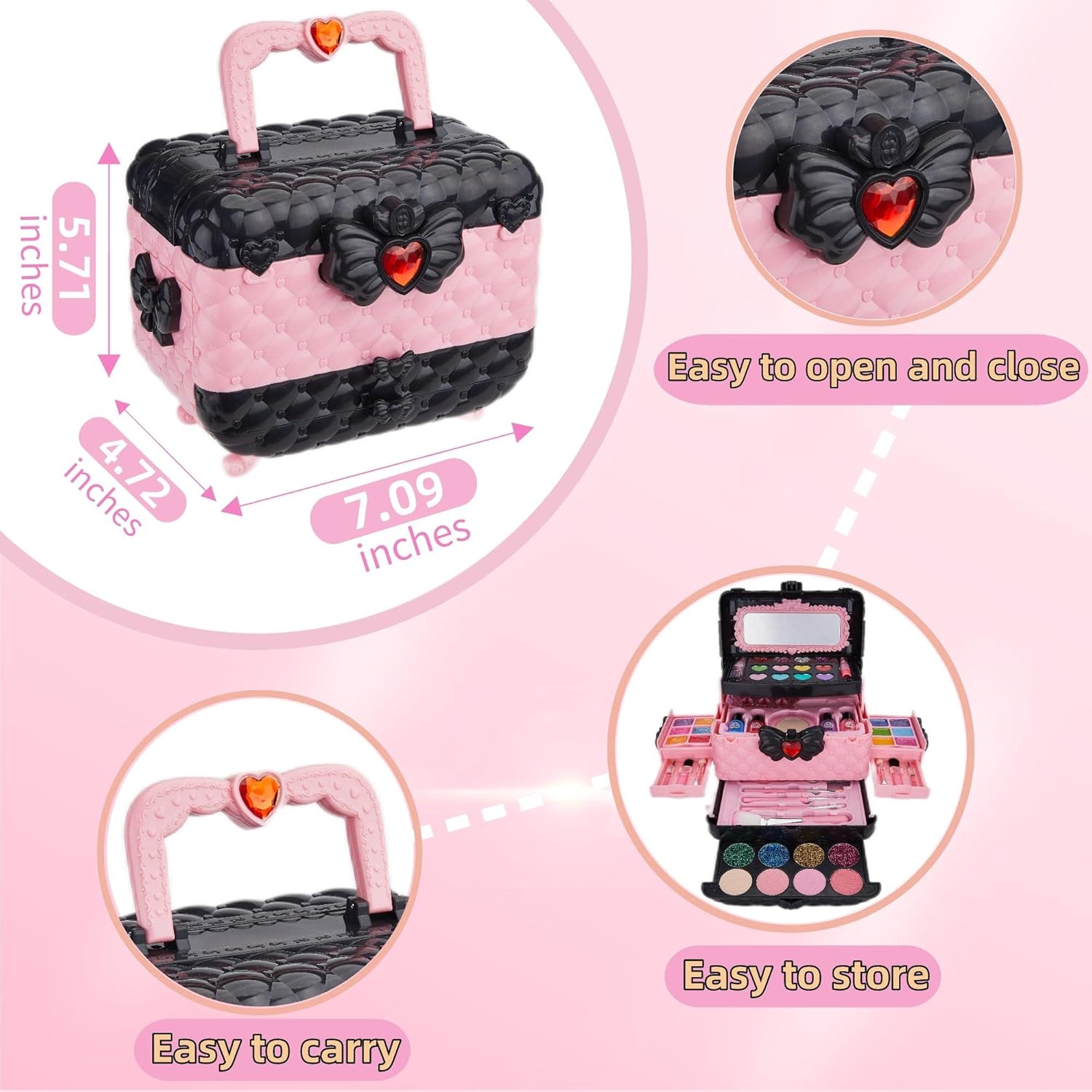 ☘【Giocattolo per il trucco super ricco 53 pezzi】I set di trucchi per bambini sono di gran moda in questi giorni. Potresti essere stato accecato mentre sceglievi i regali per la tua piccola principessa. Puoi anche provare il nostro set trucco per bambine, che include cipria pressata, ombretto, fard, lucidalabbra, rossetto, smalto, strumento per manicure, pennello per trucco, pettine per trucco, custodia per trucco, pennello per labbra. ☘ 【Giocattoli educativi per ragazze】 Quando le bambine giocano con i giocattoli per il trucco, possono divertirsi a travestirsi. Allo stesso tempo, possono coltivare la coscienza della bellezza della ragazza, migliorare la coscienza di genere e coltivare le abilità estetiche, oltre a mantenere la fiducia in se stessa e il temperamento elegante del bambino. ☘ 【Custodia per il trucco per bambini sicura e lavabile】 Il trucco per bambini lavabile, appositamente progettato per la pelle sensibile dei bambini, dice addio ai danni dei cosmetici per adulti. La formula idrosolubile è facile da pulire e si prende cura della pelle delicata dei bambini. Può essere utilizzato per il gioco quotidiano, attività genitore-figlio, feste di compleanno, spettacoli scolastici e trucco, ecc. ☘ 【Carina custodia per il trucco portatile】 La meravigliosa custodia per il trucco della piccola principessa ha una grande capacità, che consente alla tua bambina di organizzare e raccogliere giocattoli per il trucco sparsi. La custodia per il trucco è comoda da trasportare e facile da tirare, così le bambine potranno giocare con i loro amati giocattoli per il trucco ovunque. ☘ 【Set regalo di giocattoli perfetti】 Questo set da gioco per il trucco può essere un regalo per la tua ragazza carina e insegnarle il trucco! Non importa quando regalerai questa borsa per cosmetici principessa alla tua piccola principessa in qualsiasi stagione, si sentirà felice ed eccitata. Il set di trucchi per bambini è un regalo molto speciale per la festa dei bambini, regali di compleanno, regali di Halloween, regali di Natale per la tua ragazza!