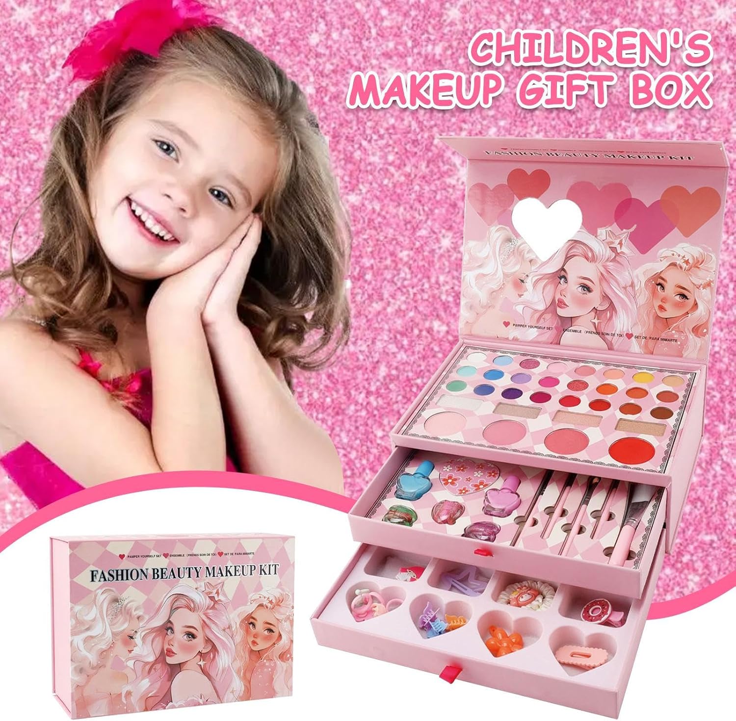 Texture delicata: realizzata con tessuti morbidi e delicati sulla pelle con una formulazione delicata che riduce le irritazioni per i bambini. Facile rimozione: con una texture rinfrescante, il set trucco per bambini può essere facilmente rimosso, semplifica la pulizia e offre ai genitori più tempo per la propria routine di cura. Divertimento d'imitazione: prova il piacere di giocare con il trucco con molte possibilità di combinazione nel set di trucchi per bambini, progettato per giochi di ruolo creativi grazie a una varietà di prodotti. Competenza creativa: sviluppa la capacità di concentrazione e abilità pratiche. Gioco di trucco che stimola l'immaginazione, stimola il design creativo e promuove l'apprendimento attivo nei bambini. Design principessa: l'attraente design principessa aumenta il fascino del set, suscita l'interesse dei bambini e garantisce un divertimento visivamente accattivante durante l'applicazione del trucco.