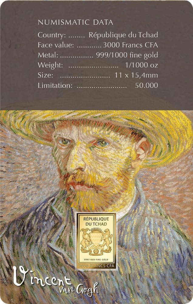 ALTA QUALITÀ - Il prodotto è realizzato con l'oro fino più puro! DESIGN – Puoi vedere il famoso quadro di Vincent van Gogh! LIMITATA – Edizione di soli 50.000 pezzi in tutto il mondo! CONSERVAZIONE – La consegna avviene in una moneta card con certificato di autenticità!