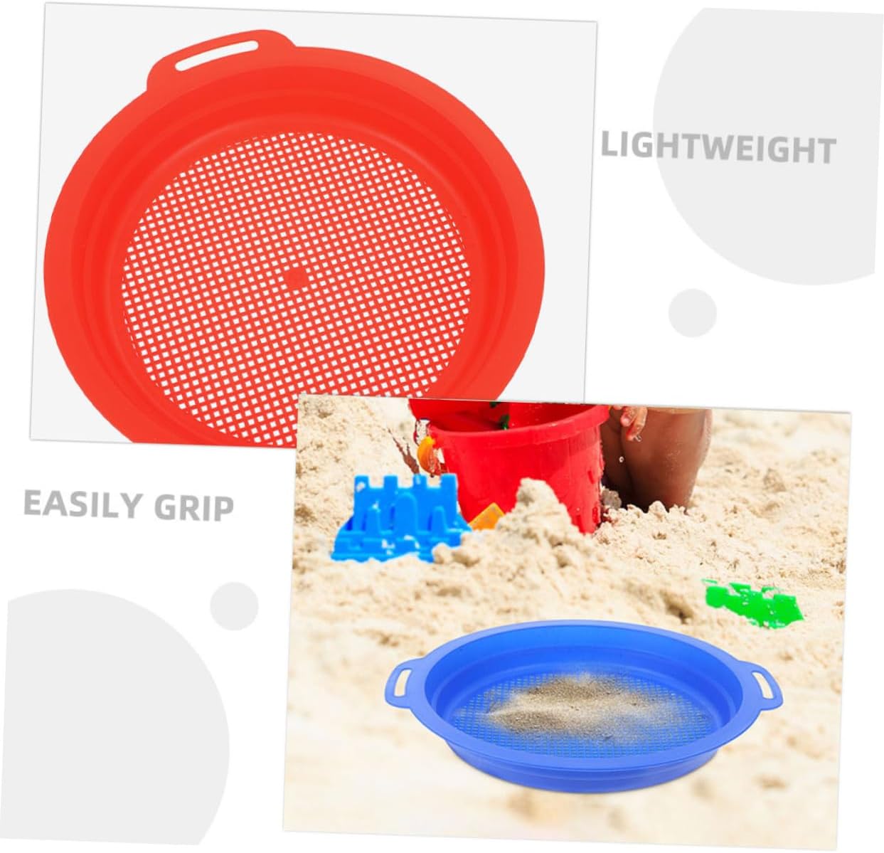 Versatile e utile: adatto per setacciare la sabbia e filtrare lo sporco, migliorando l'uso in spiaggia, setaccio per giocattoli da spiaggia, setaccio per sabbia per giocattoli da spiaggia Leggero e portatile: facile da trasportare, adatto per vacanze in famiglia sulla spiaggia e attività all'aperto, setaccio da spiaggia, setaccio per sabbia giocattolo da spiaggia Design intuitivo: facilita il setacciamento della sabbia e migliora così il tempo di gioco sulla spiaggia. setaccio per giocattoli di sabbia, giocattoli da spiaggia per costruzione robusta: robusto e resistente alla rottura, riduce la necessità di sostituzioni frequenti e consente ai genitori di esserlo. Giocattolo con setaccio da spiaggia, setaccio per sabbia per giocattoli da spiaggia E divertente: cattura l'attenzione dei bambini, promuove l'esplorazione e il divertimento della famiglia, setaccio per sabbia, setaccio per sabbia