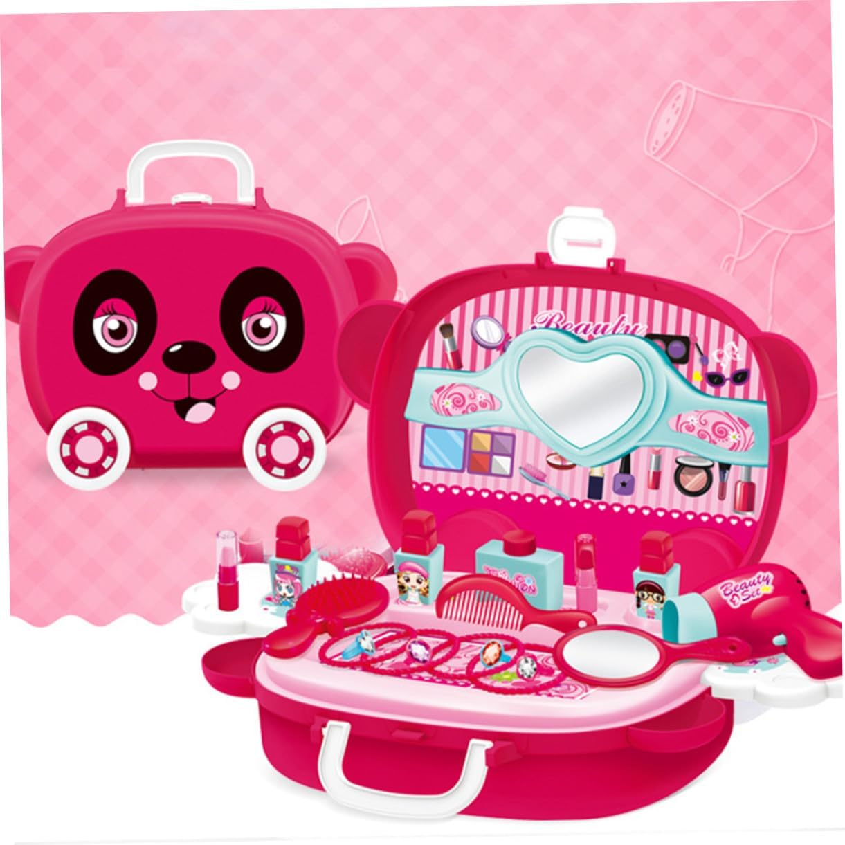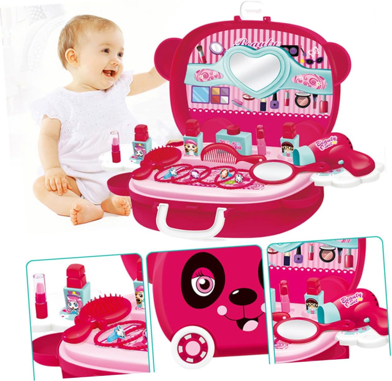 Giocattolo cosmetico di simulazione: realizzato in materiale resistente e sicuro, custodia per cosmetici di simulazione Custodia per cosmetici di simulazione: puoi giocare di ruolo con i tuoi bambini. Questo prodotto può accompagnare e migliorare efficacemente l'interazione genitore-figlio. Giocattolo cosmetico di simulazione Trucco di simulazione: il design unico della valigia promuove buone abitudini di conservazione tra i bambini e il contenuto della valigia non si perde facilmente. custodia cosmetica di simulazione La lavorazione è liscia e gli angoli arrotondati non ti faranno male alle mani e coltiveranno l'abilità di tuo figlio, questo prodotto è un grande regalo per i tuoi amici e familiari, saranno molto felici