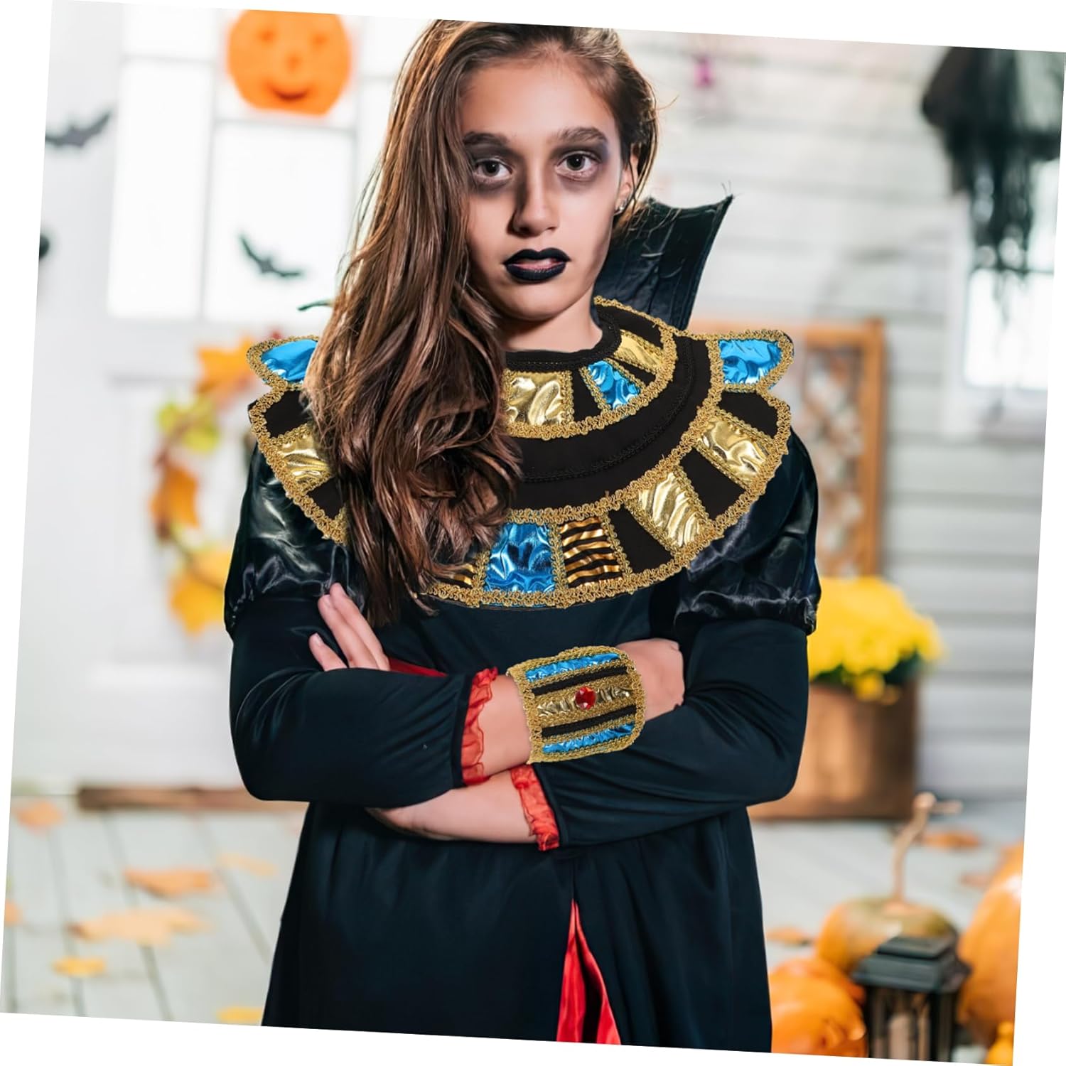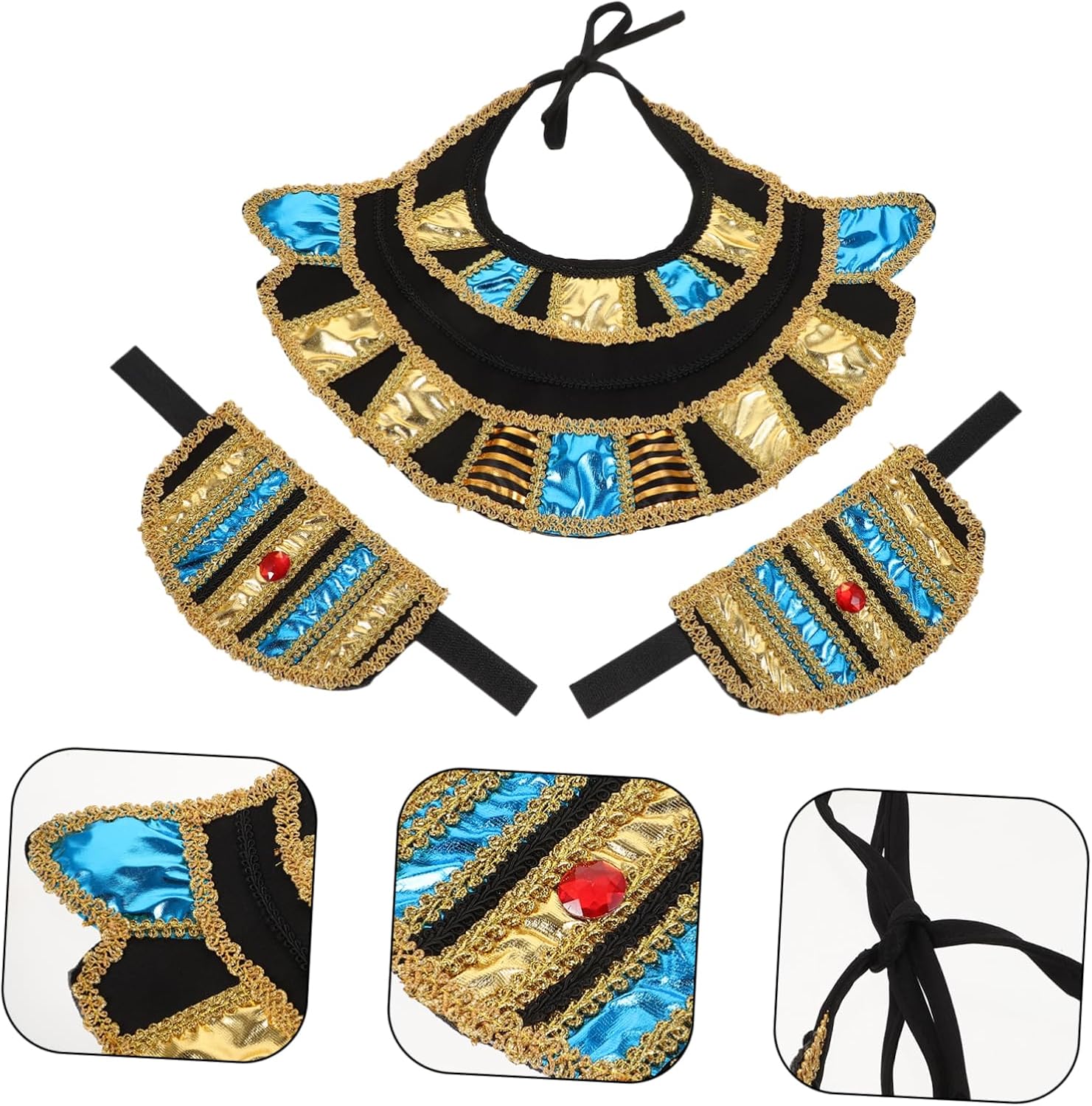 Descrizione prodotto include 2 x collare 2 x paio braccialetti egiziani Caratteristiche -Dimensioni: 45,00X30,00X0,50 cm/17,68X11,79X0,20 pollici (colletto) accessori egiziani per donne - Dimensioni: 18,00X10,00X0,50 cm/7,07X3,93X0,20 pollici (braccialetti) accessori per costumi -Materiale: tessuto -Colore: come mostrato - set costumi egiziani può aiutarti a completare costume cosplay , con accessori per costumi pratici e classici. - Realizzato in tessuto, accessorio per cosplay è resistente e riutilizzabile per un a lungo termine. - classico e divertente collare è leggero indossare. Design regolabile, da indossare. - Come regali Halloween delicati ed eccellenti da condividere con i tuoi e . - design raffinato li rende per feste Halloween, giochi ruolo e feste a tema. Descrizione della merce accessori per costumi collare può essere utilizzato non solo per feste, ma anche come oggetto per scattare foto. accessori egiziani per donne è un set costumi per feste Halloween per cosplay egiziani, realizzato con materiale in tessuto, rilassa stress del tuo lavoro frenetico, anche per gli per compleanni, feste in maschera, Halloween Avviso di sicurezza 1