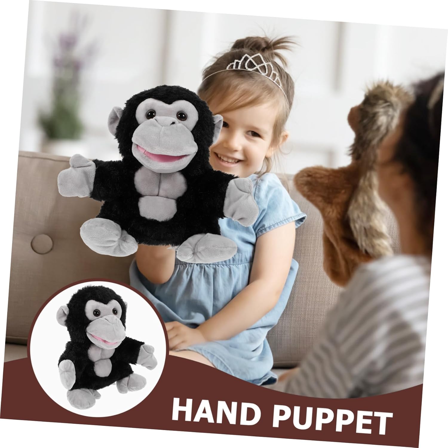 Burattino a mano con animali: burattino a mano dei cartoni animati, puoi quando lo porti in mano, un supporto necessario per la narrazione, pupazzi di scimmia: questo consente ai bambini di esprimersi attraverso il gioco, promuove la creatività e aiuta a sviluppare le loro capacità comunicative. simpatici burattini a mano con animali Divertente peluche: design con colori ricchi, è accattivante, creativo e interessante e soddisfa la tua curiosità per gli animali, gorilla di peluche bambola per bambini: con funzioni realistiche e una natura interattiva, questo ti incoraggia a essere fantasioso e inventare le tue storie, giocattolo per bambini Tipo divertente ed emozionante e: offre ai bambini un modo divertente e interattivo per apprendere e sviluppare nuove abilità, gorilla di peluche, bambole di stoffa