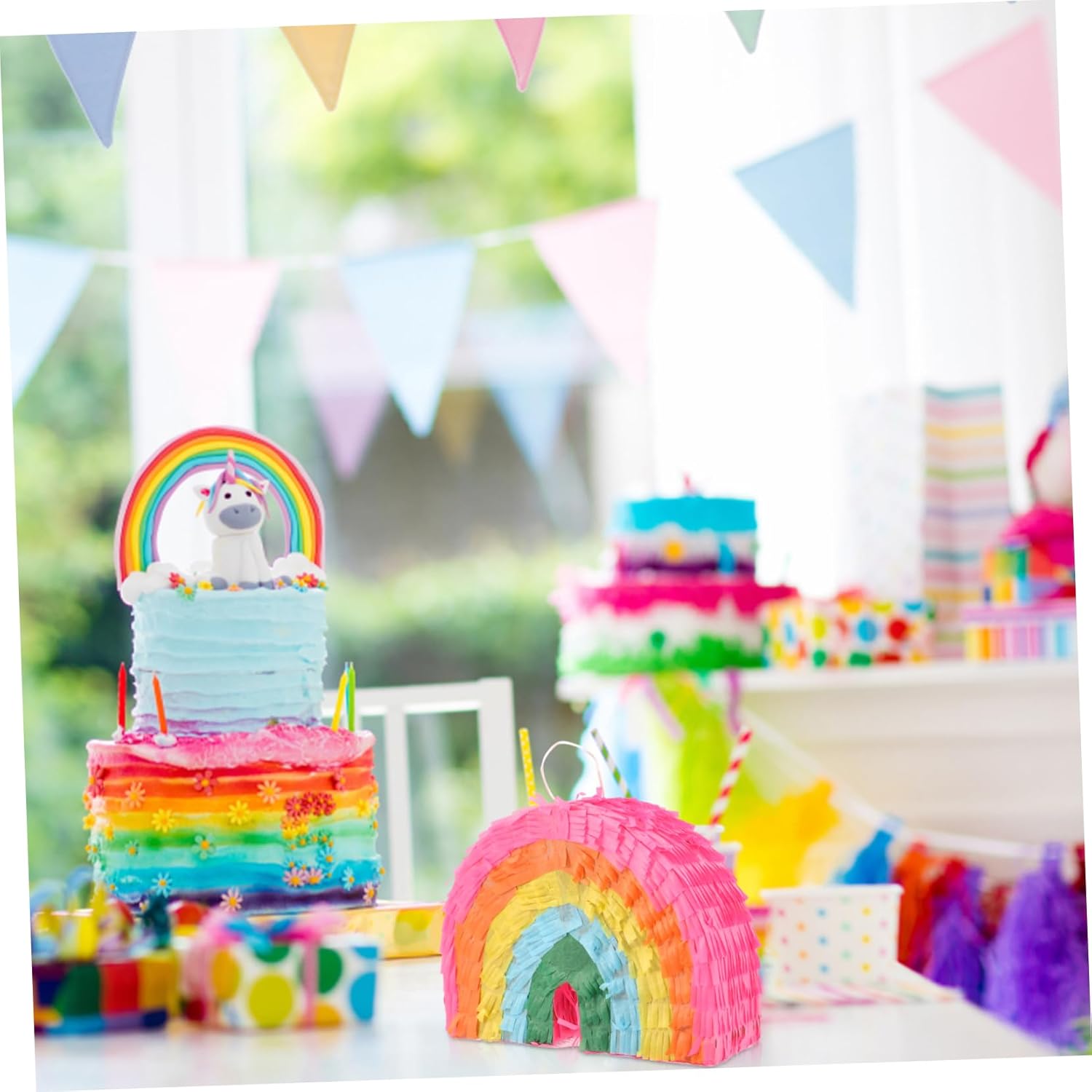 Piñata arcobaleno: sarà un ottimo intrattenitore per i compleanni e le celebrazioni dei bambini, aggiungendo gioia e divertimento alla tua festa!, Piñata colorata Piñata rivela il genere: riempila semplicemente con dolci, cioccolato e mini giocattoli, sorprendi i tuoi ospiti con un'attività divertente e dolcetti, decorazioni giocattolo per riempire la piñata per feste di compleanno: questo giocattolo completa feste di carnevale, feste a tema, baby shower, feste di compleanno, celebrazioni e altro ancora! piñata per feste di compleanno Piñata di compleanno: puoi appenderla ovunque, ad es. B. su un muro, una porta, un albero, lungo il corridoio, ecc., piccola piñata Piñata giocattolo: riempila con caramelle, mini giocattoli, piccoli coriandoli e altro ancora e poi scartala per sorprendere i tuoi ospiti e bambini!, piñata colorata