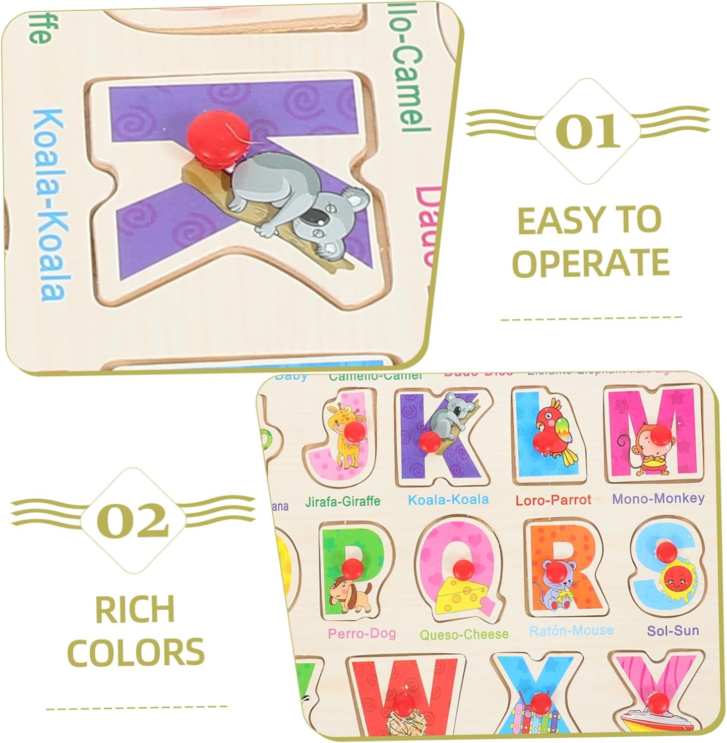 Puzzle per bambini - questo puzzle giocattolo spagnolo può insegnare al bambino la lingua spagnola e capirla, tavola puzzle spagnola Puzzle prescolare - realizzata in materiale di legno leggero, di buona fattura, giocattoli per bambini Tavola di abbinamento spagnola - puzzle in legno è un eccellente strumento didattico per sviluppare la coordinazione occhio-mano dei bambini, smistare giocattoli Montessori per la prima educazione - è abbastanza robusta, non facile da deformare o rompere e può servirti a lungo I giocattoli per bambini servono giocattoli educativi per - migliora la resistenza nell'affrontare le sfide e li aiuta efficacemente a migliorare la loro capacità di discriminazione, pensiero e osservazione, puzzle board