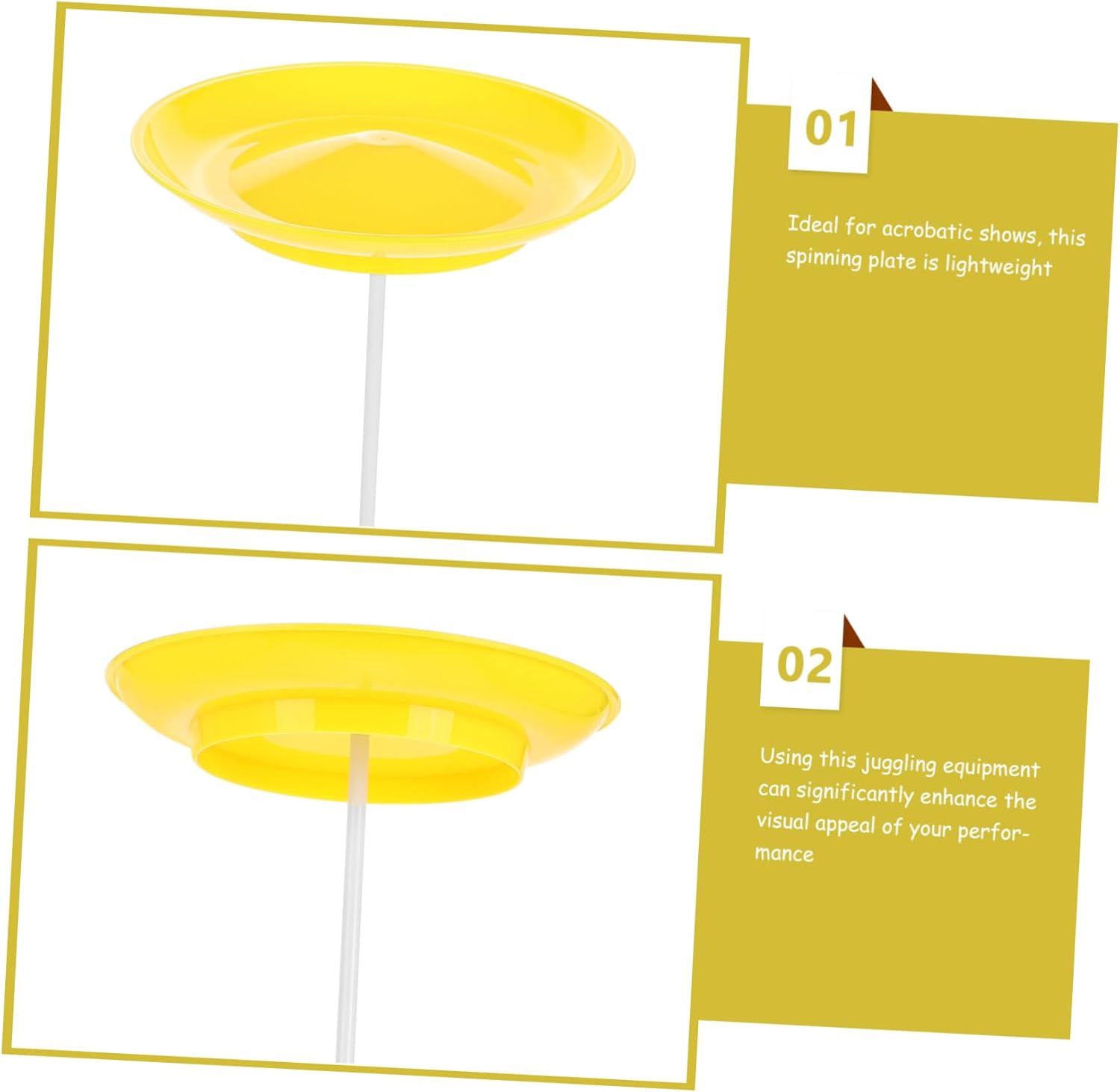 Migliora le prestazioni: incorporare questa attrezzatura da giocoleria nel tuo numero può migliorare le prestazioni generali e attirare più attenzione da parte del pubblico. Strumento di giocoleria, regalo per feste Migliora le prestazioni: l'uso di questa attrezzatura da giocoleria può aumentare notevolmente l'attrattiva visiva della tua performance e l'attenzione del pubblico. Accessori per spettacoli teatrali, piastra da giocoleria Facile da imparare: adatto a principianti e artisti professionisti, questo oggetto da giocoleria è facile da usare, bastone da giocoleria da palco, bastone da giocoleria all'aperto Migliora l'attrattiva visiva: utilizzando questo oggetto da giocoleria, puoi migliorare significativamente l'impatto visivo della tua performance e attirare il pubblico. Oggetti di scena, bastone di plastica da giocoleria Leggero e facile da maneggiare: questo giradischi è progettato in modo conveniente, facile da trasportare e ideale per spettacoli acrobatici, accessori per club di giocoleria e accessori per spettacoli sul palco.