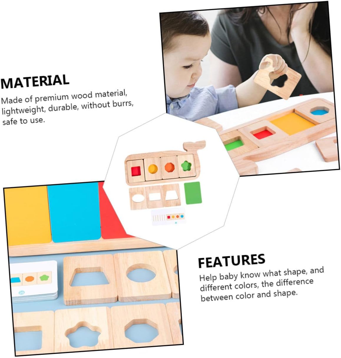 Giocattolo puzzle colorato: quando si gioca con questo giocattolo interessante, la creatività e l'immaginazione del bambino saranno notevolmente sviluppate. Giocattoli per bambini Giocattolo puzzle - ottimo per migliorare la coordinazione occhio-mano del bambino, nonché la memoria e le capacità cognitive, strumenti didattici Tavola per la separazione dei colori - questo giocattolo può anche allenare ripetutamente la memoria dei bambini di colori e forme appresi, giocattolo puzzle Tavola balena geometrica - la dimensione dei blocchi è appropriata, adatta al bambino da afferrare, giocattolo cognitivo Giocattolo per il riconoscimento del colore - realizzato in materiale di legno di alta qualità, leggero, senza sbavature, sicuro da usare, giocattolo a forma di tavola