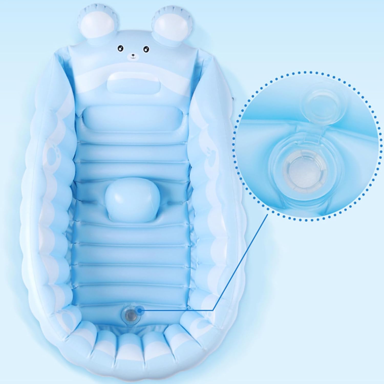 Design ergonomico: la vasca da bagno gonfiabile dal design ergonomico offre un comfort rinforzato con un fondo ruvido antiscivolo per flussi d'acqua coerenti Sicuro da usare: la fodera per cuscino non antiscivolo realizzata in materiale morbido offre al bambino una superficie sicura e confortevole durante il bagno. Realizzato in PVC ispessito con certificazione di sicurezza, offre una calma durante il bagno o gli schizzi in acqua Archiviazione facile: goditi l'inflazione e la deflazione risparmiando manodopera con arresto rapido dello scarico per un drenaggio rapido, ganci per un'asciugatura facile e archiviazione compatta per le dimensioni delle palme Varie applicazioni: passaggio da una vasca da bagno per bambini senza soluzione di continuità a una sedia a sdraio rilassante con un rapido gonfiaggio o usala come piscina pieghevole per riporla quando viene svuotata. Adatto per versatilità in interni ed esterni, attività piacevoli come il bagno, giochi d'acqua e campeggio Bel regalo: questa vasca da bagno gonfiabile offre un design vivace e accattivante e offre un'esperienza di balneazione divertente e interattiva per i bambini, un'aggiunta adatta alle feste di compleanno e ai regali per le vacanze