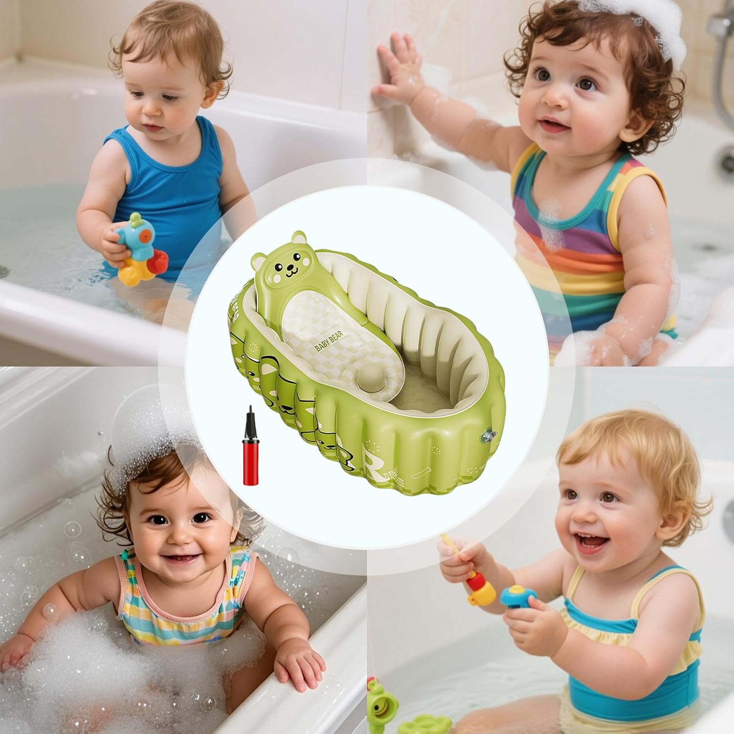 Sicurezza Antiscivolo Migliorata: La vasca da bagno inflabile è progettata per offrire protezione antiscivolo e superfici imbottite che si adattano all'ergonomia del bambino, favorendo bagni sicuri e pratici sia in posizione seduta che sdraiata con un design confortevole e protettivo Pratico e Durevole: Garantisce eccellente valore con materiali di lunga durata per uso da neonato a bambino, regolabile attraverso le fasi di crescita come scelta pratica per genitori con design robusto e funzionale per utilizzo prolungato nel Caldo e Igienico: Mantiene un ambiente caldo e pulito durante il bagnetto, opzione pratica per uso indoor tutto l'anno con design semplificato per genitori Soluzione di riporo pratica: La vasca infantile si sgonfia e si ripone in secondi, con design portatile che la rende perfetta per piccole case e viaggi, massimizzando la comodità senza sforzo Resistenza alla pressione: Il PVC ecologico ad alta densità conferisce alla vasca da bagno un'eccellente di carico e durabilità prolungata, garantendo una struttura stabilizzata che mantiene stabilità durante tutto l'utilizzo senza deformazioni