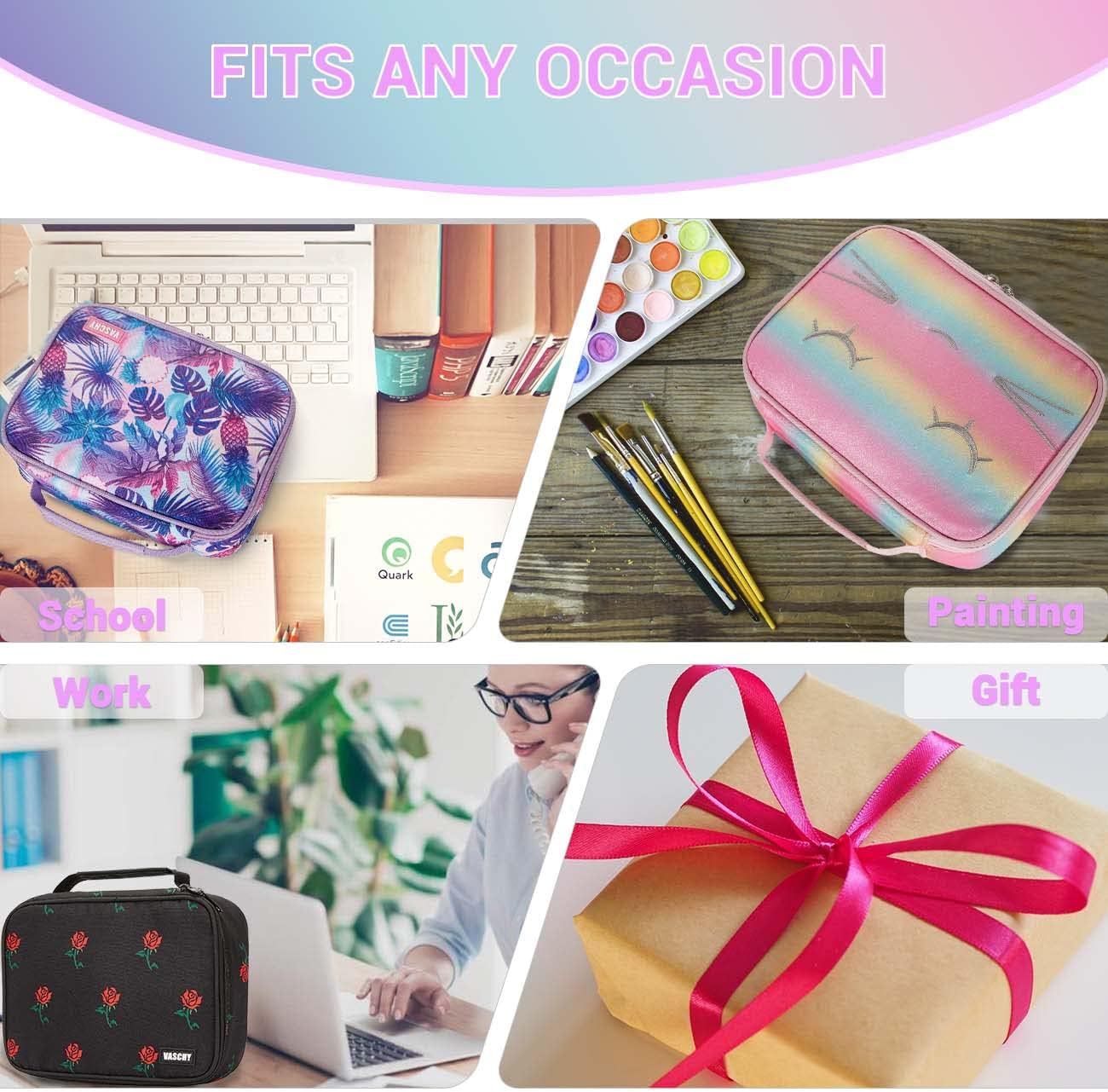✎Durevole: Il portamatite Vaschy è realizzato in poliestere, robusto e durevole, ed è particolarmente grande capacità che contiene almeno 72 matite. Questo portamatite è costruito per essere duraturo e altamente resistente agli strappi, un buon supporto fisso per ufficio, scuola, uso quotidiano. ✎ Organizzazione Facile: questo astuccio è costruito con sezioni funzionali migliori. Tre strati con slot elastici sono progettati per colorare matite, evidenziatori, pennarelli o penne regolari, rendendo le tue matite e penne ben organizzate. Tre tasche a rete raccolgono non solo piccoli accessori come righello, gomma, colla e cartoncini, ma anche oggetti più grandi- calcolatrice. ✎ Portata Grande: Dimensione: Esterno: 25x19.5x7.5cm / 9.8x7.6x2.9 pollici (lunghezza x larghezza x profondità); Tasca principale anteriore: 23,5x17cm / 9,2x6,7 pollici (lunghezza x larghezza ); Tasca frontale più piccola: 13x17cm / 5,1x6,7 pollici (lunghezza x larghezza ); Tasca inferiore: 23x17cm / 9x6.7 pollici (lunghezza x larghezza ); Strati: 21x17,5 cm / 0,25 x 6,8 pollici (lunghezza x larghezza ). Peso: 0,45 Kilogrammo / 2,2 lb ✎ Progettazione dei Disegni: la maniglia superiore addensata ti offre un modo migliore per portare comodamente questo portamatite con un sacco di penne e oggetti all'interno. Le maniche staccabili possono essere rimosse facilmente per regolare lo spazio delle maniche o espandere lo spazio quando si desidera inserire una grande cancelleria o uno strumento. Le tasche a rete con cerniera sono visibili per trovare e ottenere le cose più facilmente. ✎ Garanzia: con una garanzia di 6 mesi contro eventuali difetti di fabbricazione al momento dell'acquisto, il portamatite di grande capacità è perfetto sia per gli studenti che per gli adulti, specialmente per queste persone che di solito portano molte penne. Il portamatite Vaschy mostra un'eccellente capacità e un aspetto ordinato, ti offre il tempo libero se hai bisogno di un buon organizzatore per raccogliere le penne in ordine.
