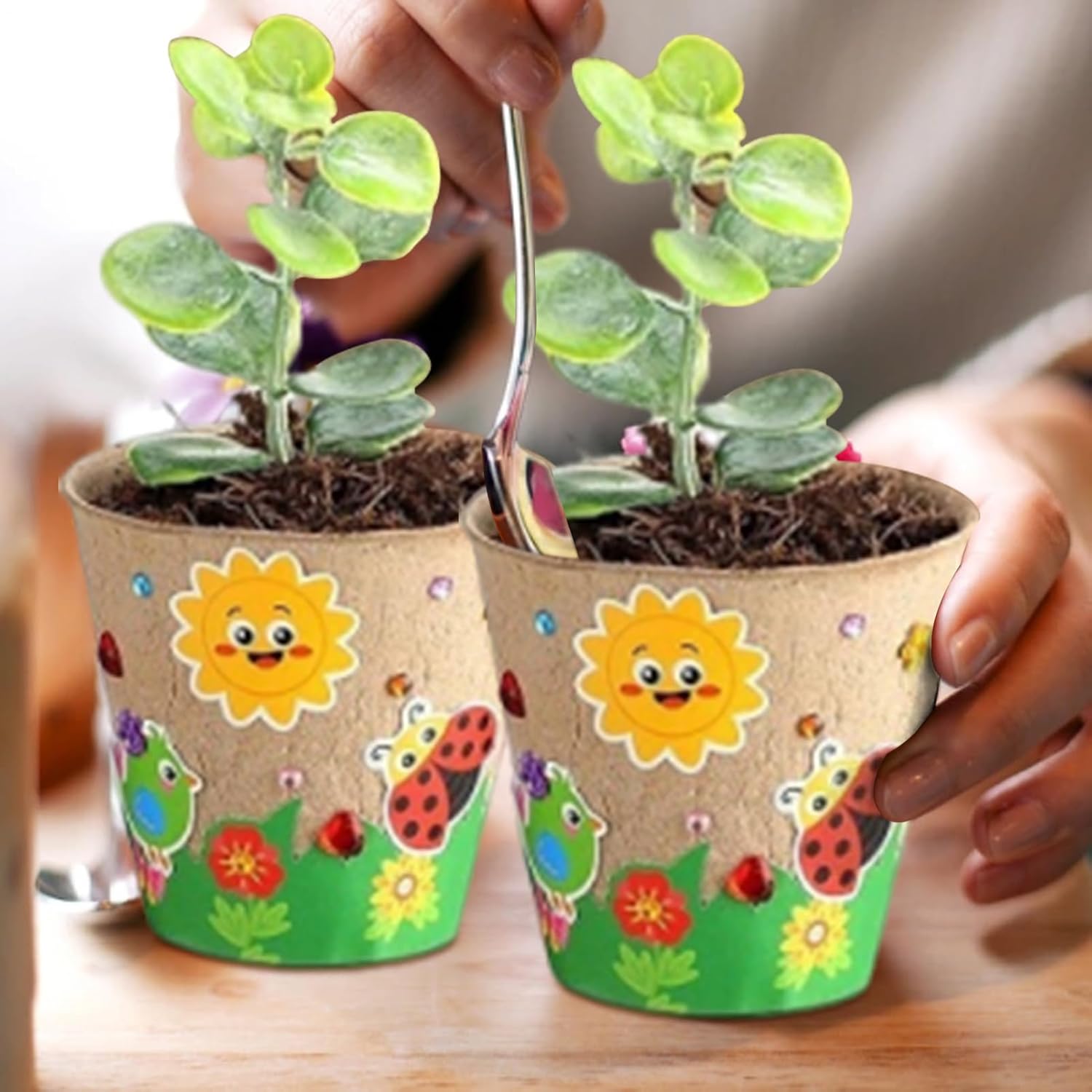 Materiale Resistente: Con adesivo EVA e adesivi in schiuma, l'decorativa assicura adesione e stabilità costanti, mantenendo vasi di carta eleganti e durevoli in varie condizioni Strumento di apprendimento creativo: Combina temi di , farfalle e frutta per incoraggiare la scoperta pratica, ispirare la creatività e sviluppare una connessione più profonda con la bellezza naturale Integrazione Efficace: Migliorano l'apprendimento pratico con vasi per fiori progettati per attività didattiche e coinvolgimento ludico, assicurando utilità polivalente in ambienti scolastici per necessità educative diversificate Osservazione Crescita Facilitata: Copertura trasparente con fori traspiranti massimizza illuminazione e circolazione d'aria creando condizioni ottimali per piante rigogliose Facilità d'impiego: Con design pronto per la classe, questo kit vasi pre-confezionato assicura un utilizzo semplice e intuitivo, eliminando la necessità di colla durante l'assemblaggio per progetti creativi senza sforzo e coinvolgenti per tutte le abilità