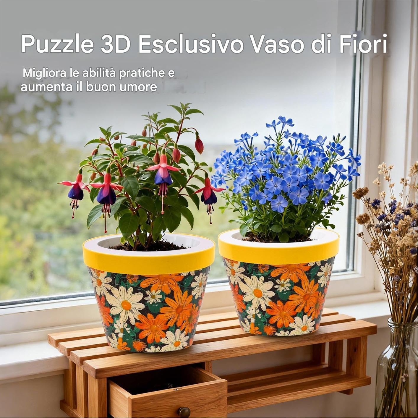 Divertimento Coinvolgente: Il vaso puzzle assicura una connessione scorrevole grazie al design interlacciato, creando un processo di montaggio piacevole che favorisce il relax e ispira arrangiamenti decorativi immaginativi in qualsiasi ambiente abitativo. Questo gioco puzzle offre intrattenimento e una valvola di sfogo creativa per ridurre lo stress durante il libero, arricchendo la casa con decorativi originali e promuovendo un'esperienza di gioco rilassante e divertente per tutt Materiali Sicuri e Resistiti: Progettato con stampaggio ABS, il puzzle vaso mostra un'eccezionale resistenza all'usura mantenendo bordi lisci e sicuri. Ciò garantisce un'interazione piacevole e senza pericoli, sia che venga utilizzato come individuale o attività di gruppo per stimolare creatività e concentrazione. per giochi in famiglia o tra amici, offre un'esperienza affidabile e coinvolgente per tutti gli utenti. Regalo per Occasioni Speciali: I vasi puzzle per fiori consentono di rafforzare i legami attraverso la creazione, offrendo un'idea regalo handmade significativa per segnare eventi importanti e aggiungere un tocco emotivo all'arredamento durante riunioni familiari o feste. Questo regalo unico incoraggia la collaborazione e la connessione, creando memorie condivise e abbellendo la casa con un design unico. per celebrare momenti come matrimoni o festività, il vaso puzzle promuove Mantenimento Forma Durevole: Realizzato con un a doppia fessura stretto, il vaso puzzle raggiunge una struttura stabile e mantiene la sua forma per anni, eliminando la necessità di colla e garantendo un uso affidabile per progetti di giardinaggio domestico o design paesaggistico, con una forma che resiste nel in ambienti interni ed esterni come balconi e living. Accento Stile Casa: Il vaso puzzle progettato per adulti vanta una texture geometrica in rilievo che si integra alla perfezione in qualsiasi ambiente interno, conferendo un tocco di espressione artistica agli spazi abitativi e arricchendo l'arredamento moderno grazie al suo design unico e distintivo. Ideale per impreziosire soggiorni o uffici come raffinato accento di stile, questo vaso puzzle si adatta con eleganza a diverse decorazioni, esaltando l'estetica degli interni con la sua presenza ar