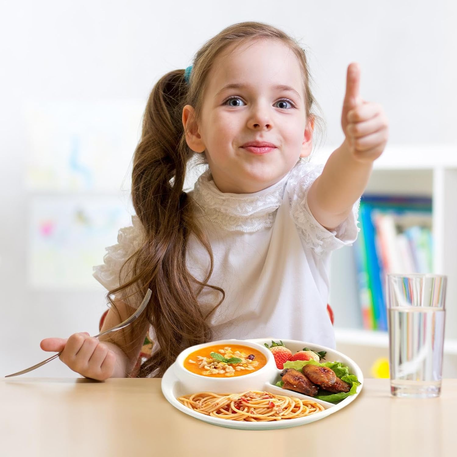 Controllo Porzioni: Soluzione pratica con 4 scomparti per organizzare le porzioni alimentari, supporta la preparazione dei pasti e promuove una dieta equilibrata ad ogni pasto grazie alla divisione ottimizzata Antiscivolo: Prodotto essenziale per pasti ordinati, combina funzionalità anti-versamento con design sicuro per bambini, garantendo affidabilità e praticità ad ogni pasto. Sicurezza Microonde: Realizzato in materiale PP per alimenti resistente al calore, questo è sicuro per microonde, per preparare pasti sani passando facilmente da frigorifero a microonde secondo necessità Igiene Garantita: Vassoio separa alimenti e divisore a pulizia rapida prevengono odori persistenti, promuovendo igiene durante i pasti e rendendo la pulizia post-utilizzo veloce ed efficace Controllo Porzioni: Promuove l'autonomia durante i pasti con aree segmentate che guidano i bambini verso schemi alimentari bilanciati, sostenendo l'apprendimento graduale del controllo delle porzioni e costruendo fiducia nella loro capacità di nutrirsi efficacemente