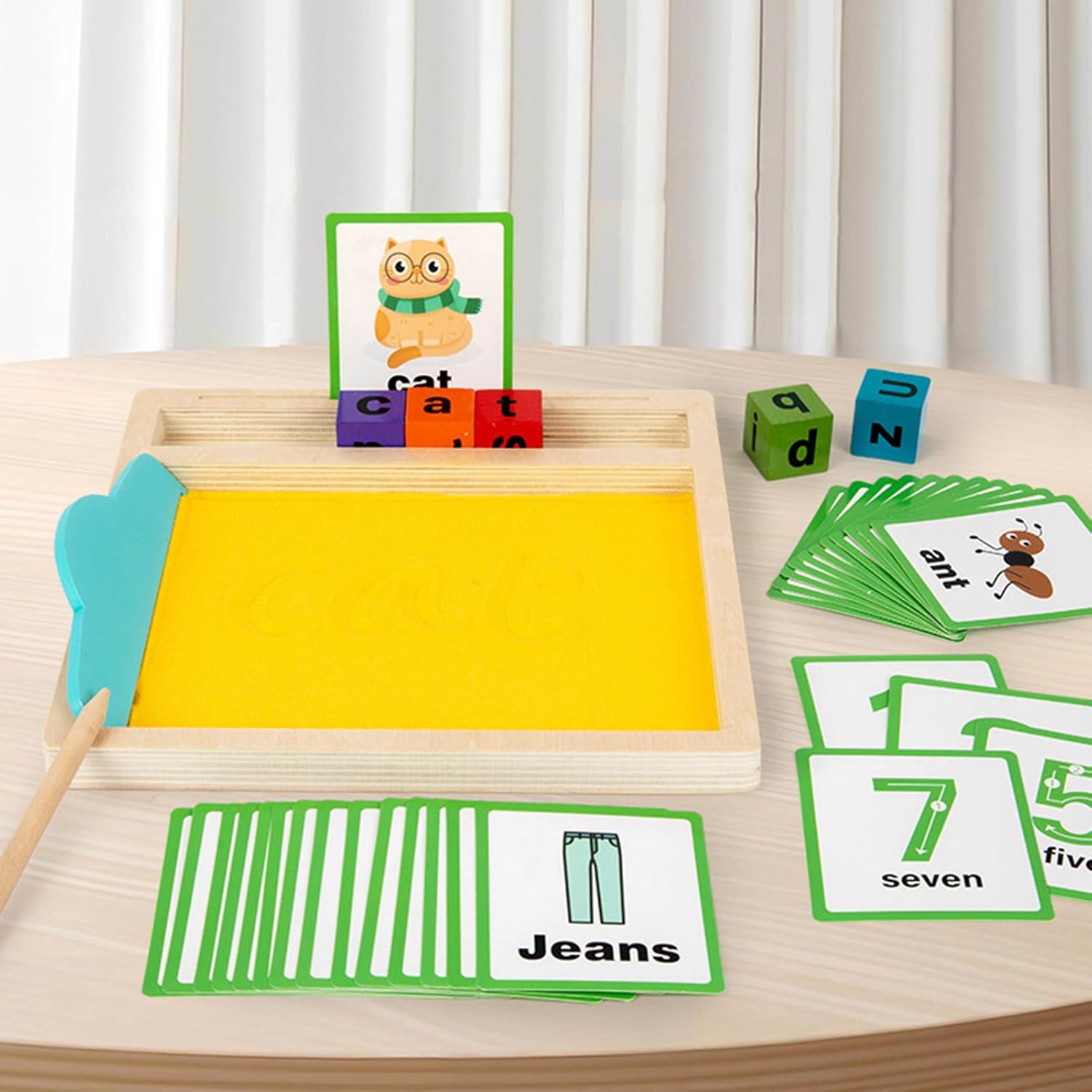 Apprendimento sensoriale: questo vassoio da scrittura in sabbia combina apprendimento tattile e visivo, aiutando i bambini a sviluppare capacità motorie fini e coordinazione occhio-mano mentre traccia lettere, numeri o forme in un ambiente divertente e libero, ideale per l'uso prescolare e domestico Design durevole: realizzato in legno naturale con una superficie liscia e riempita con sabbia fine e pulita, questo vassoio è abbastanza robusto da resistere all'uso ripetuto in aula o a casa, offrendo uno strumento affidabile per attività educative e giochi creativi Portatile e pratico: leggero e compatto, questo vassoio è facile da trasportare e riporre, rendendolo perfetto per centri scolastici, scuola a casa o viaggi, in modo che i bambini possano imparare in modo produttivo ovunque e in qualsiasi momento senza extra o confusione Divertimento riutilizzabile: la sabbia può essere rapidamente levigata con un semplice passo, consentendo una pratica infinita e sperimentazione con il tracciamento e il disegno delle lettere, incoraggiando i bambini a costruire fiducia e abilità di alfabetizzazione attraverso il gioco ripetitivo Strumento multiuso: oltre al tracciamento delle lettere, questo vassoio supporta l'esplorazione sensoriale e la creatività, rendendolo una risorsa eccellente per educatori e genitori che cercano di arricchire l'educazione della prima infanzia con giochi di apprendimento pratici e coinvolgenti