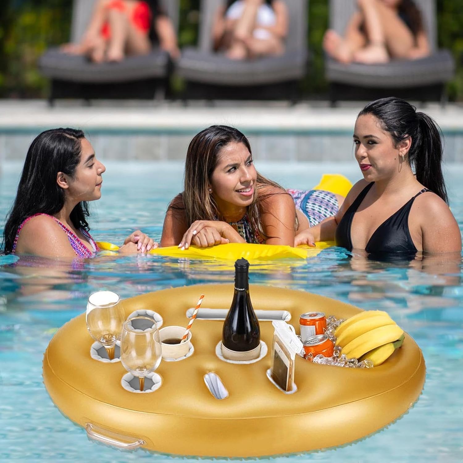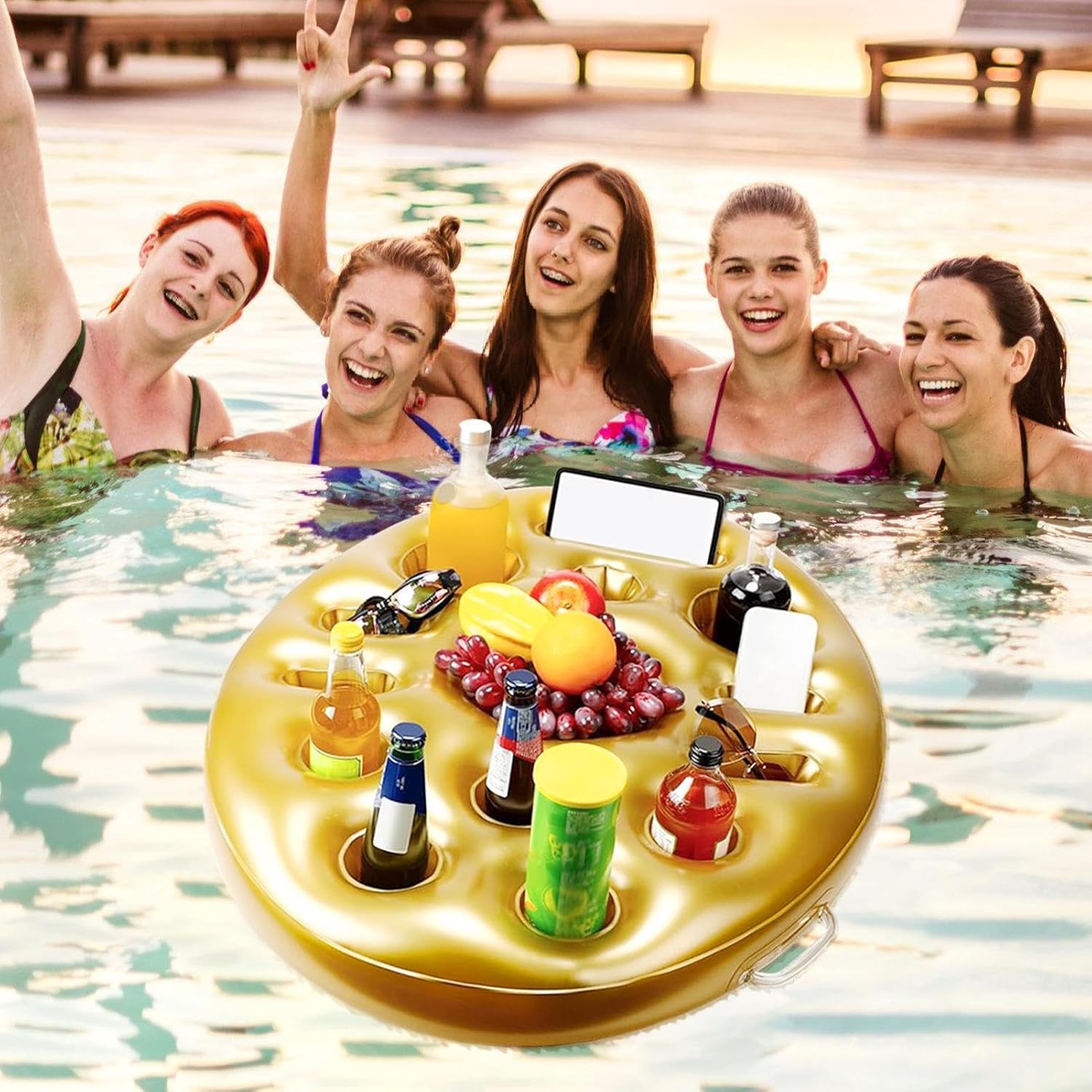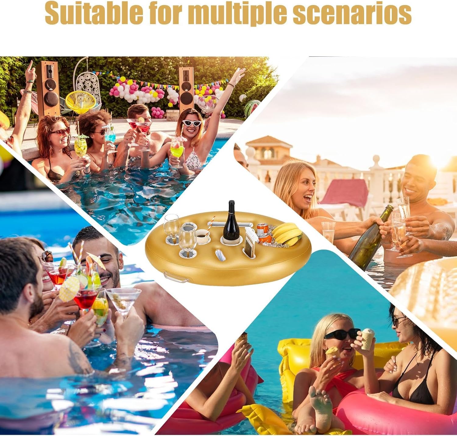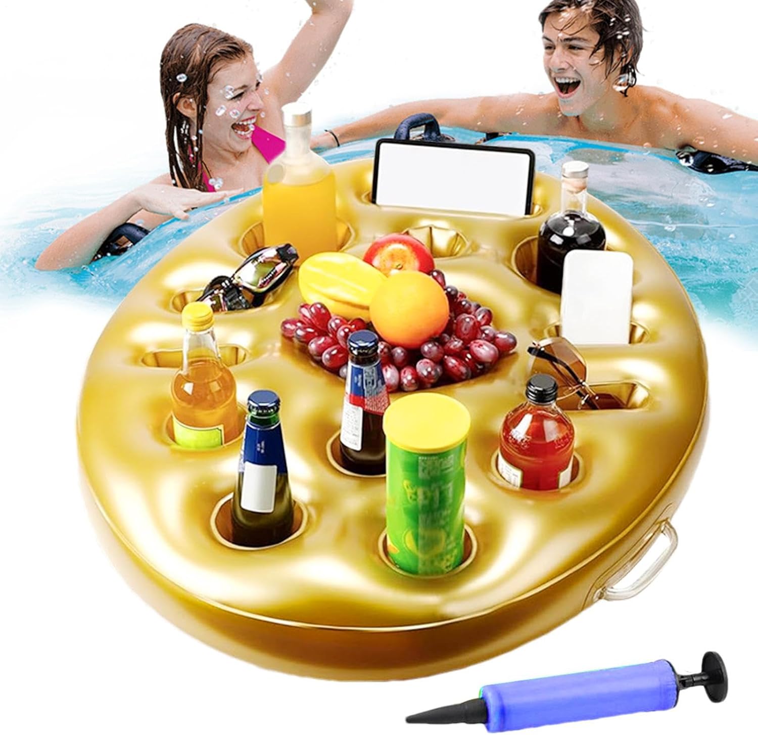 Robusto e affidabile: realizzato in robusto PVC, questo portabevande gonfiabile promette affidabilità, resiste ai danni e alla deformazione, garantendo un'utilità prolungata. Uso semplice: offre divertimento a tutti con il nostro portabevande gonfiabile, dotato di due maniglie per una facile presa. Questo delizioso regalo è perfetto per familiari e amici per godersi il tempo in piscina o in spiaggia. Comodo da tirare e una buona aggiunta a qualsiasi attività acquatica. Ampio utilizzo: non limitare il divertimento solo in piscina o in spiaggia, il nostro versatile portabevande gonfiabile è perfetto per ogni occasione, che si tratti di una festa in vasca idromassaggio o di una riunione informale. Tieni le tue bevande a galla e a portata di mano. Conservazione multifunzionale: perfetto per eventi all'aperto, questo portabevande gonfiabile può contenere una grande capacità di bevande, snack e persino lettori musicali o telefoni con i suoi 9 fori. Adatto a tutti i tuoi must have per le feste. Conservare comodamente: iniziare con un semplice colpo o pompa per gonfiare; una volta utilizzato, piegare per una facile conservazione: il suo design salvavita ad anello garantisce stabilità sull'acqua.