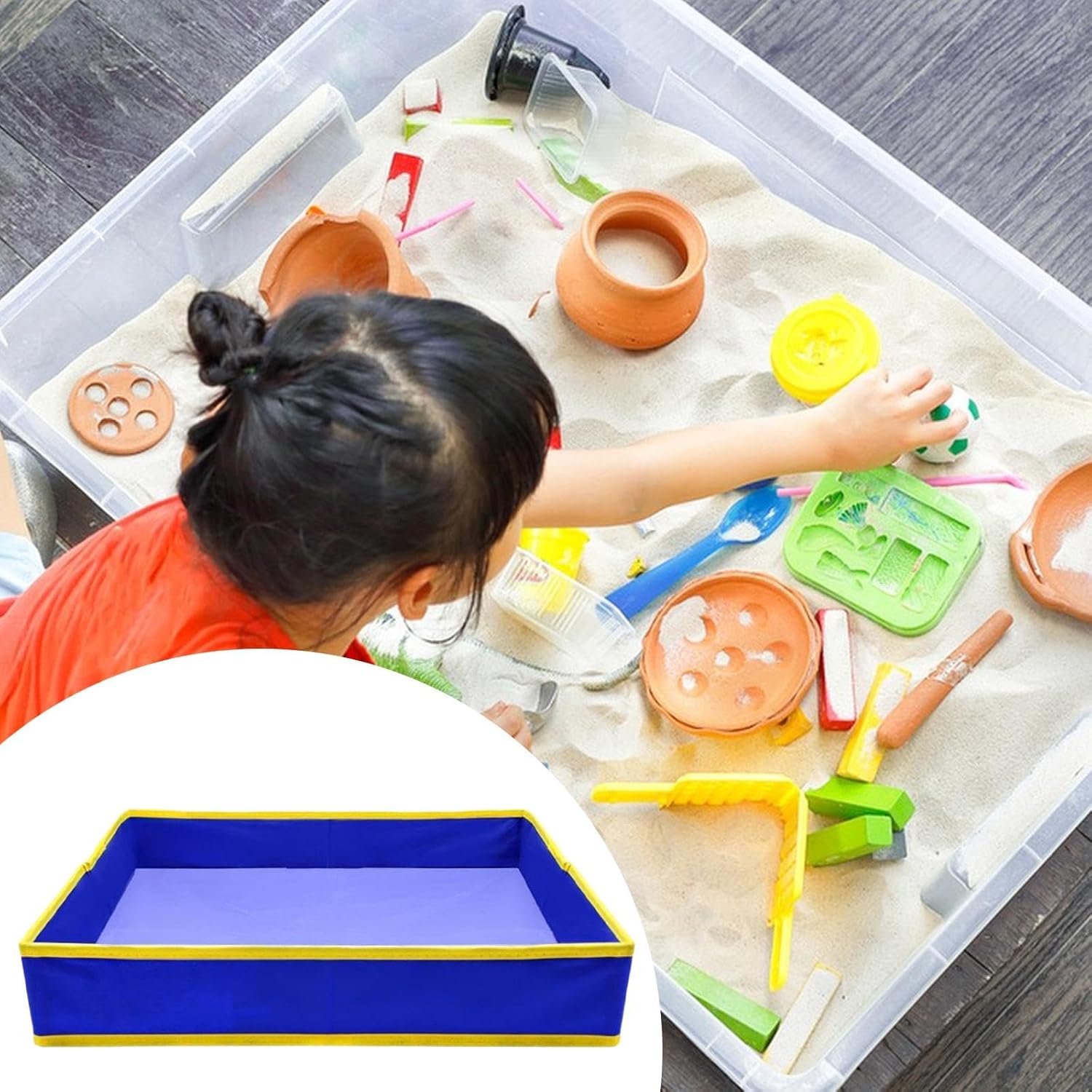 Vassoio sensoriale pieghevole per giochi con sabbia, acqua e materiali naturali, ideale per stimolare la creatività e lo sviluppo sensoriale dei bambini Realizzato in poliestere impermeabile di alta qualità, resistente all'acqua e facile da pulire, garantendo lunga durata e igiene durante il gioco Perfetto per attività ricreative all'aperto in spiaggia, parco giochi o cortile, ma anche per uso interno come area gioco dedicata e controllata Design pieghevole per facile trasporto e conservazione, si ripiega rapidamente dopo l'uso occupando poco spazio quando non necessario Superficie riutilizzabile per molteplici sessioni di gioco, offre un'alternativa ecologica ed economica rispetto ai prodotti monouso