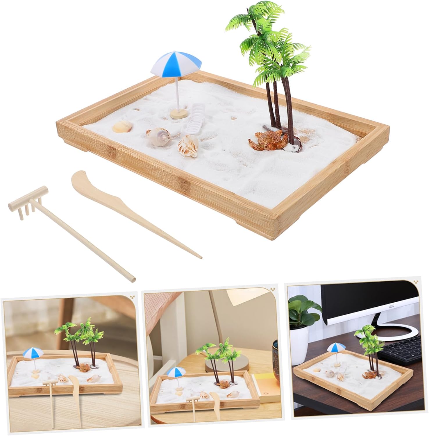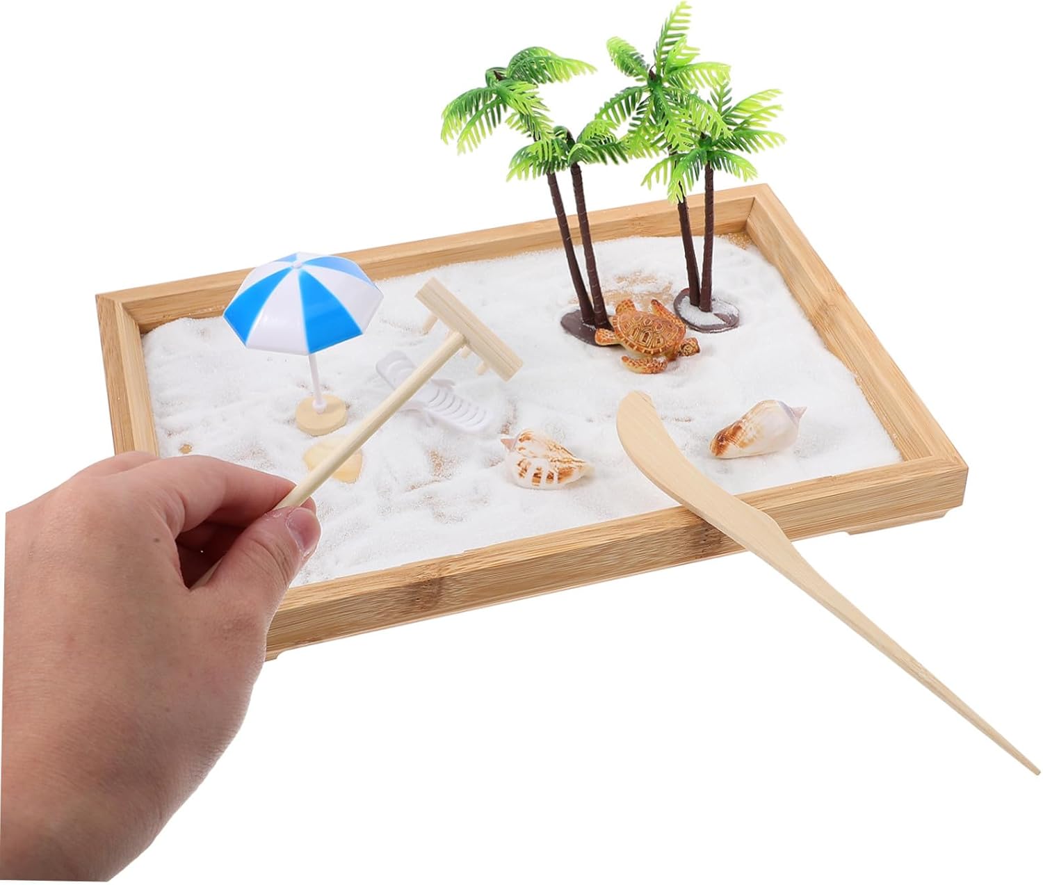 Vassoio con sabbia per scrivania - L'affascinante decorazione da giardino Zen aggiunge un'atmosfera speciale a qualsiasi stanza o area e rende l'ambiente circostante accogliente e invitante, Vassoio con sabbia per spiaggia con decorazione paesaggistica in miniatura - Canale ed energia pacifica, ideale per soggiorno o aree reception, Tavolo con sabbia a tema mare con decorazioni per scene oceaniche - Goditi la spiaggia sulla tua scrivania a casa o in ufficio, fuggi dalla vita di tutti i giorni e lascia che il tuo giardino di sabbia torni come accessorio da scrivania Mini sandbox "oceano mare vita" - un oggetto da collezione perfetto per chi ama l'artigianato e la creazione di miniature, mini paesaggi da scrivania Mini scrivania ornamento: il tema unico include figurine di creature della sabbia e del mare, giocattoli da tavolo da spiaggia