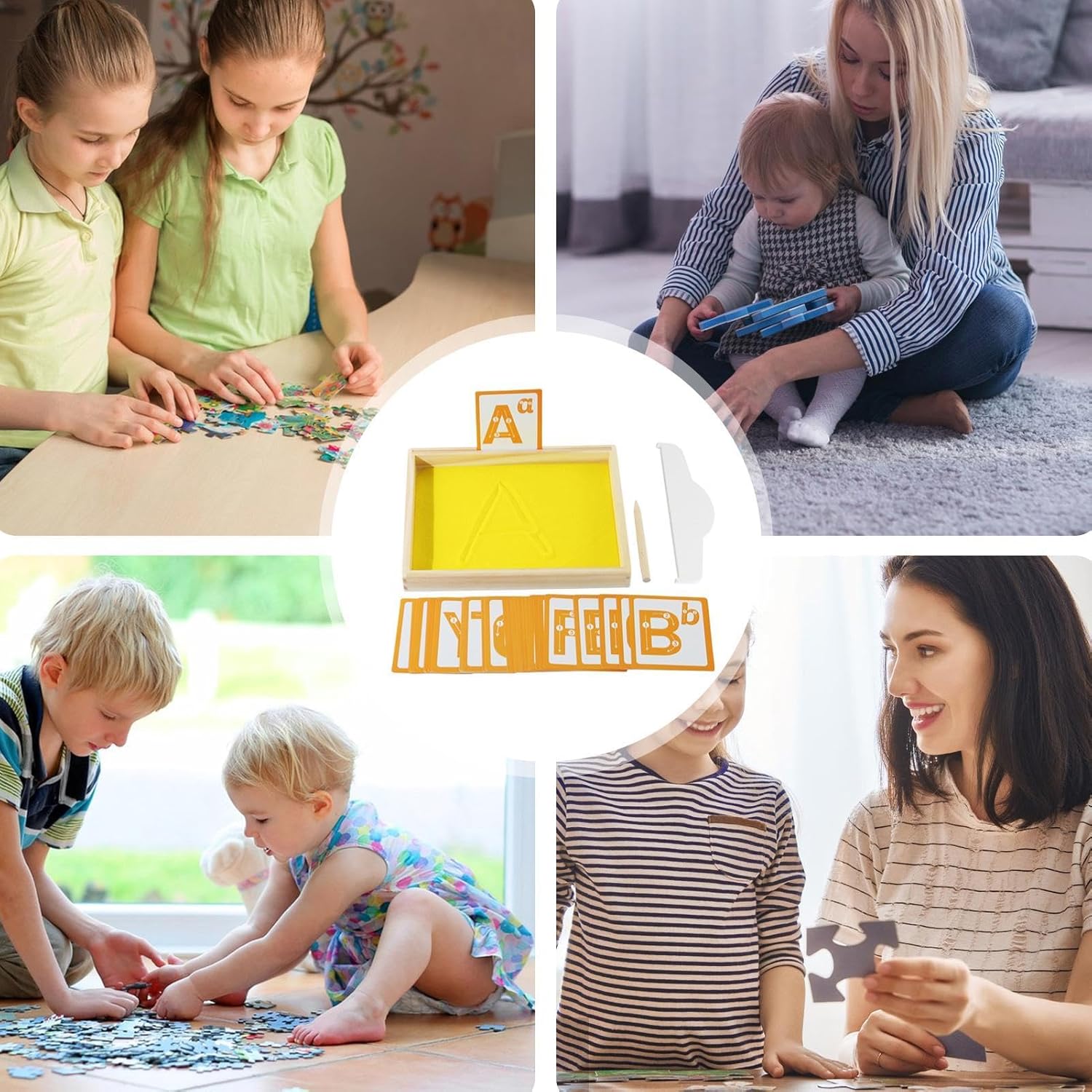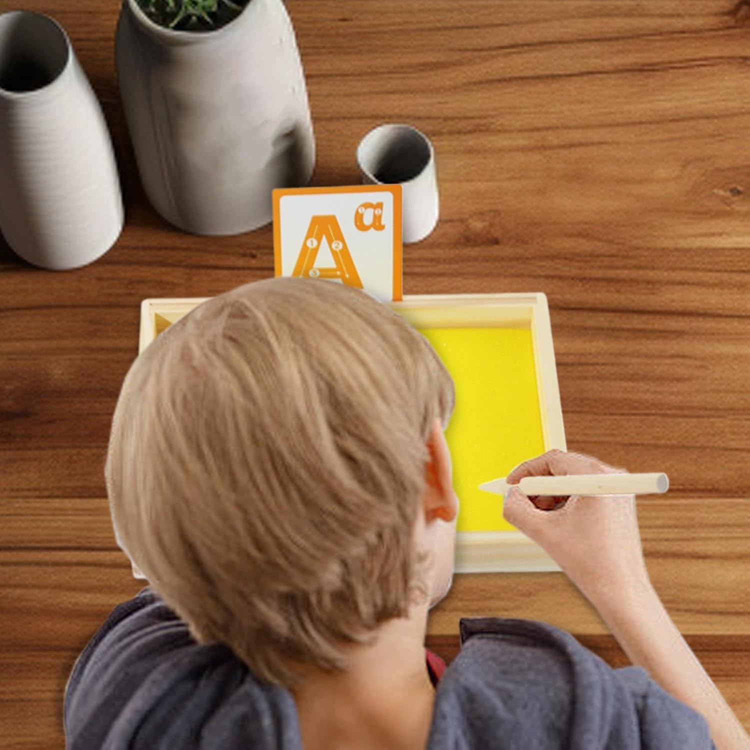Legno a prova di bambino: realizzati in legno di alta qualità, i nostri vassoi per scrivere in sabbia presentano bordi arrotondati e lisci che garantiscono un gioco sicuro senza rischiare le mani delicate del tuo bambino Aiuto per l'apprendimento: con una penna in legno, un raschietto e 36 carte incluse, i nostri vassoi per scrivere con la sabbia offrono infinite opportunità di creatività. Lascia correre la tua ispirazione con l'esperienza sensoriale di moare la sabbia in capolavori Stimola la creatività: incoraggia il tuo bambino a esplorare la propria immaginazione attraverso l'arte a sabbia e il tracciamento e lettere. Perfetto per sviluppare abilità nella pittura e nella scrittura. Questo vassoio per scrivere in sabbia è un modo divertente e interattivo per consentire al tuo bambino di imparare e creare Promuove la padronanza a scrittura: i vassoi per scrivere in sabbia offrono un metodo unico di allenamento dei muscoli a mano fino a padroneggiare la corretta struttura e lettere, creando scrittori sicuri e competenti Porta gioia: il nostro vassoio per scrivere in sabbia è strumento straordinario che migliora le capacità di scrittura fornendo stesso un'esperienza divertente e sensoriale per i bambini. Incoraggia lo sviluppo a creatività e 'immaginazione, rendendola un'attività di apprendimento perfetta per ragazzi e ragazze che li porta gioia