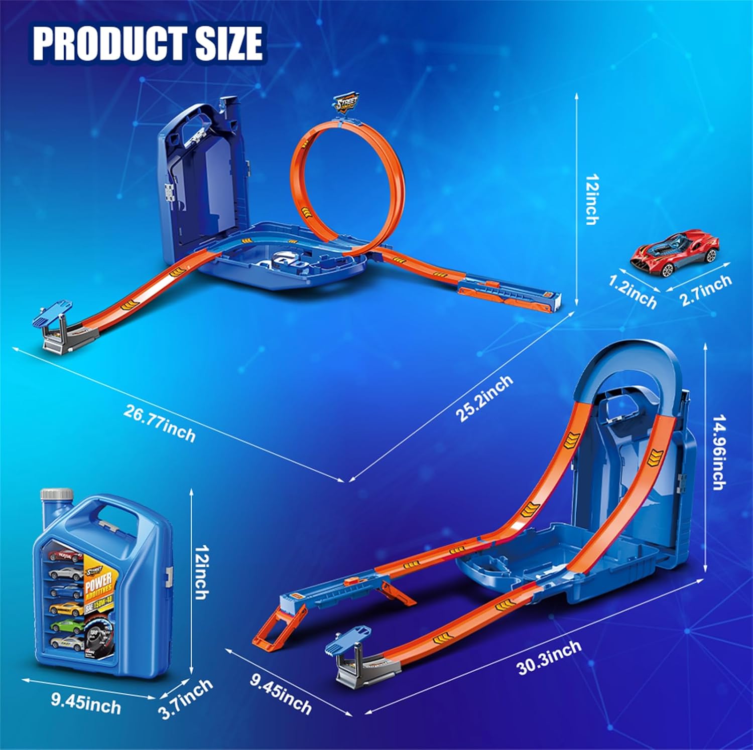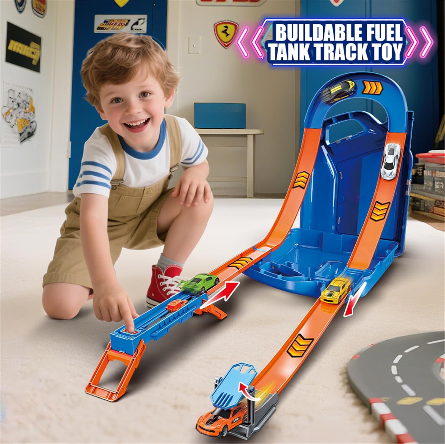 Serbatoio carburante pista giocattolo: questo set di pista per auto convince con un design unico a botte dai colori vivaci. Apri e collega le parti della pista della canna per costruire due diverse piste per gare emozionanti! Il design fresco e pratico non solo stimola la creatività dei bambini, ma consente anche di risparmiare spazio dopo il gioco. Due modalità pista: costruisci due emozionanti layout di pista: una pista a forma di U o un circuito circolare. Il booster manuale offre 3 livelli di potenza di avviamento regolabili, senza batterie. Basta tirare indietro l'interruttore e premere per far uscire le auto lungo la distanza accelerata a gravità. I bambini adoreranno l'emozionante piacere di corsa! Sei auto da corsa pressofusione: include 6 auto da corsa colorate in diversi design per corse avvincenti. Le auto corrono lungo la pista con potenza e velocità, mentre la loro struttura stabile garantisce una corsa fluida. La copertura in vetro acrilico della scatola si apre per riporre tutti e 6 i veicoli in modo ordinato. Materiali sicuri e durevoli: realizzato in ABS di alta qualità, questo giocattolo è atossico, inodore e resistente allo sbiadimento. La superficie liscia e senza sbavature protegge le mani piccole, mentre il manico portatile rende facile per bambini e genitori portare il giocattolo ovunque. Regali giocattolo per ragazzi di età compresa tra 3, 4, 5, 6, 7 e 8 anni. Regalo perfetto per bambini: questo emozionante set di pista da corsa è adatto a bambini dai 3 anni in su, ed è un regalo ideale per compleanno, Natale, Capodanno, Pasqua o Halloween. Oltre al divertimento di corsa di alto profilo, favorisce la coordinazione e la creatività dei bambini. Per qualsiasi domanda sul prodotto, non esitate a contattarci, risponderemo entro 24 ore.