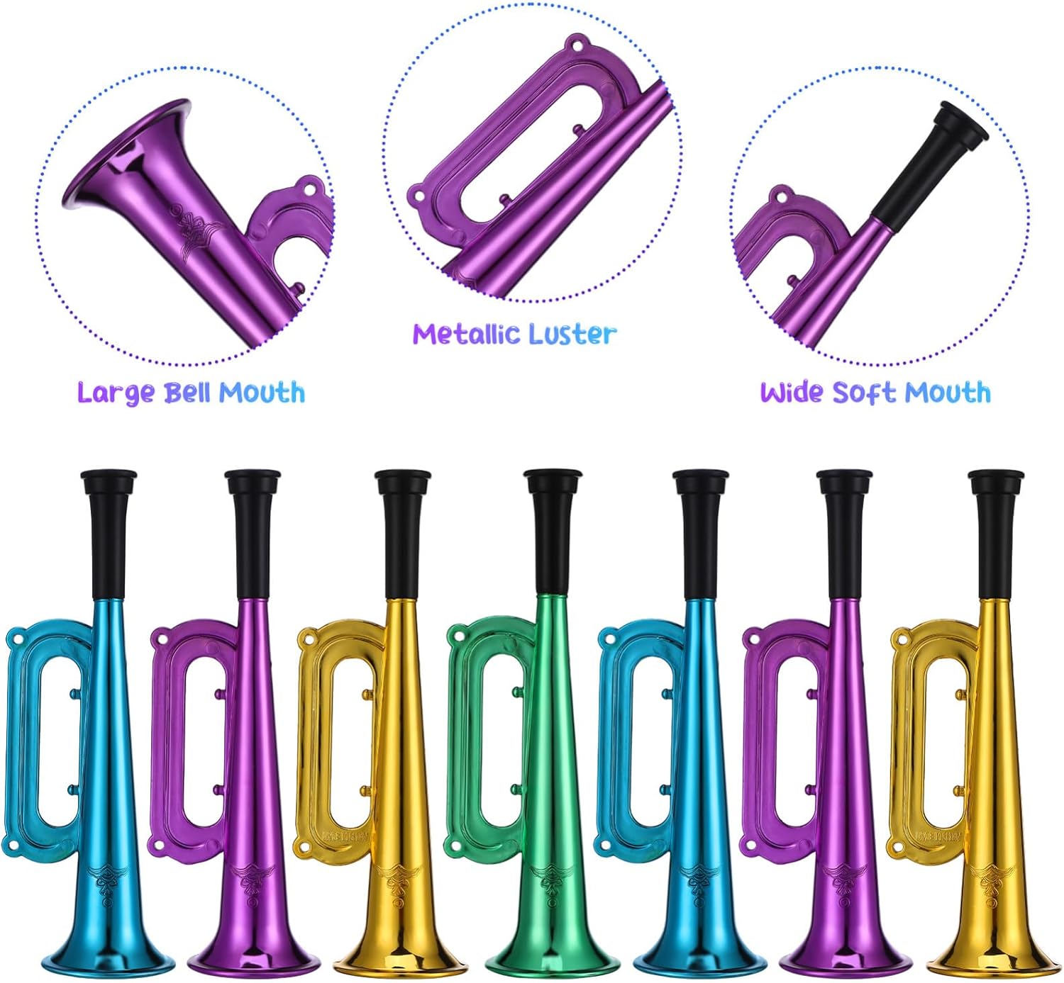 SICURO DA USARE: la superficie del giocattolo a tromba è liscia e priva di spigoli vivi, rendendolo sicuro da usare a lungo. MATERIALE ROBUSTO: realizzati in plastica resistente, i corni giocattolo sono robusti e resistenti ai danni, garantendo che possano resistere a giochi difficili COMPATTO E PORTATILE: il design piccolo e leggero della tromba per ragazzi li rende facili da trasportare e riporre FACILE DA USARE: i corni giocattolo sono semplici e comodi da usare, non richiedono abilità speciali, rendendoli adatti a bambini di tutte le età DESIGN COLORATO: i corni giocattolo sono disponibili in più casuali, offrendoti una di opzioni tra cui scegliere