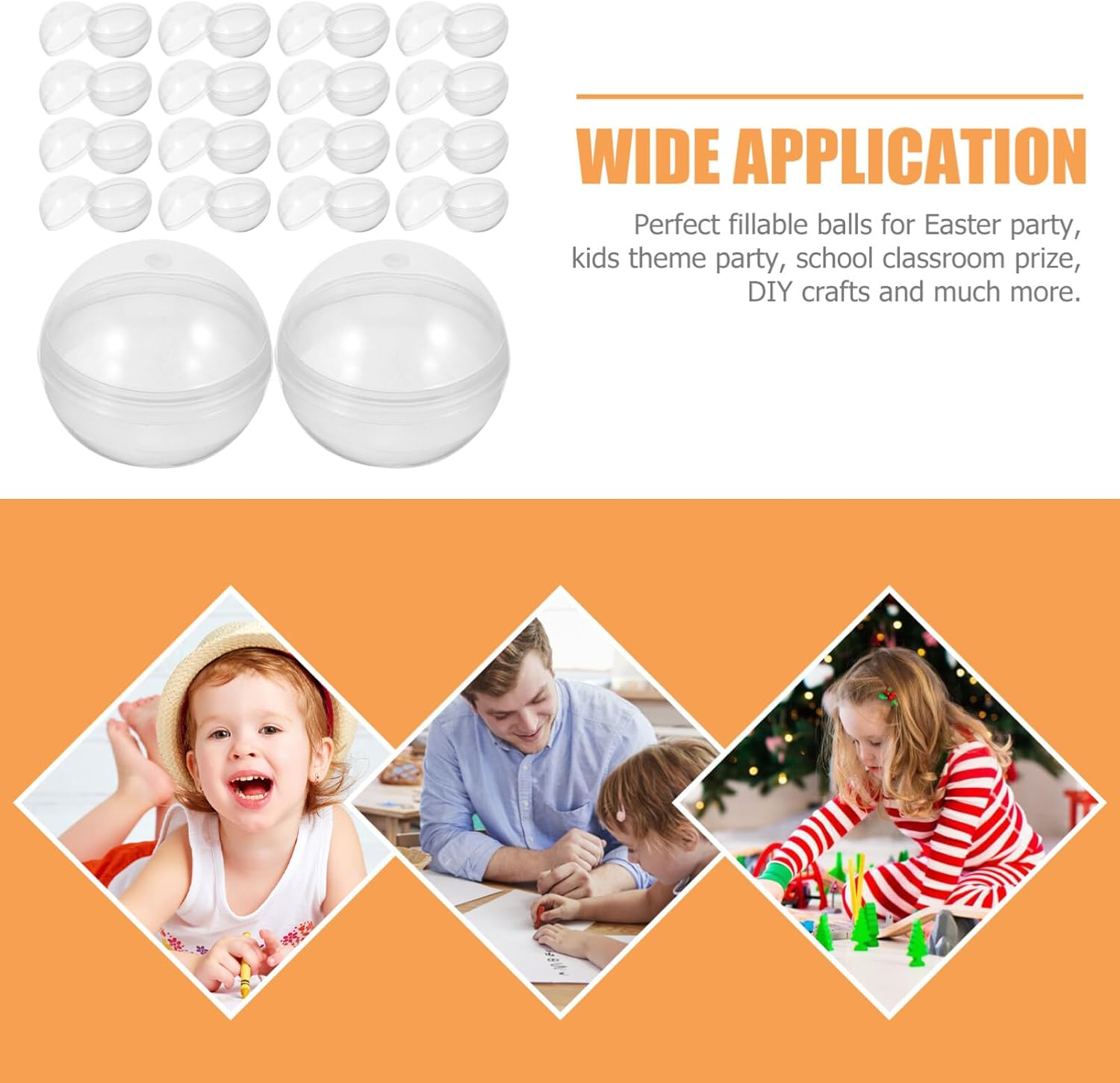 UTILIZZI MULTIPLI --- una piccola palla molto pratica, adatta a piccoli , caramelle e piccole bambole, e può anche essere utilizzata come accessorio per i distributori automatici le macchine per bambole. CREATIVO --- un bellissimo piccolo, molto adatto per essere utilizzato come lotteria di festa, portando più divertimento alla festa. FACILE DA USARE --- Semplice da aprire e chiudere, puoi mettere dolci, bambole all'interno, è molto bello. Diverse occasioni: adatto a diverse occasioni, è possibile utilizzarlo a feste, Natale, compleanni e matrimoni. MATERIALE DI ALTA QUALITÀ: un materiale plastico sicuro e durevole, robusto e durevole, può proteggere bene gli oggetti che memorizzi.