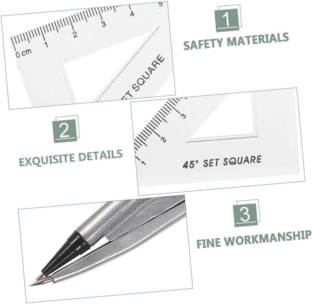 Set da disegno: questo set include un compasso, un goniometro e più righelli, offrendo una raccolta completa di strumenti per il disegno e la misurazione precisi, compasso e goniometro, matematica del compasso Costruzione: questo set è progettato per resistere all'uso regolare, rendendolo una scelta affidabile per la scuola, l'ufficio o l'uso domestico, goniometro per lavorazione del legno, righelli Utilizzo conveniente: garantisce un'esperienza di disegno ed efficiente, eliminando la necessità di affilatura costante, bussole per il disegno, piccolo righello Strumenti di disegno versatili: questo set completo di compasso e righello include tutto il necessario per un disegno e una stesura precisi, rendendolo ideale sia per studenti che per professionisti, forniture per l'architettura, compasso da disegno Ampia di usi: adatto a una varietà di applicazioni, tra cui attività d'ufficio, progetti scolastici e uso domestico, questo set soddisfa tutte le tue esigenze di disegno e misurazione, goniometro per la scuola, goniometro e bussola
