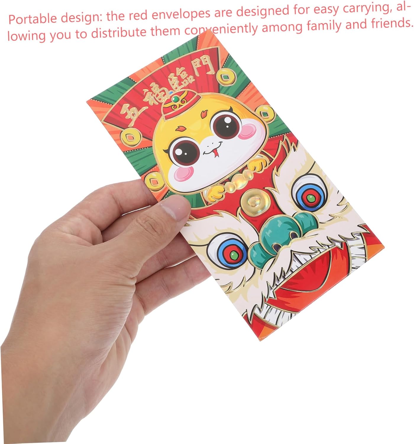 Design unico dell'anno del serpente: le buste rosse 2025 presentano un design unico dell'anno del serpente, che le rende un'aggiunta speciale alle celebrazioni del anno. Migliora l'atmosfera festosa: questi pacchetti rossi sono ottimi per migliorare l'atmosfera festosa delle tue celebrazioni, rendendole più vivaci. Buste spaziose: progettate per contenere una notevole quantità di denaro, queste buste sono ideali per fare regali generosi. Portatili e convenienti: il design pratico di queste buste le rende facili da trasportare e distribuire tra i tuoi cari. Uso versatile: ideali per il Capodanno cinese, i matrimoni e altre celebrazioni, queste buste sono un modo versatile per condividere le tue benedizioni.