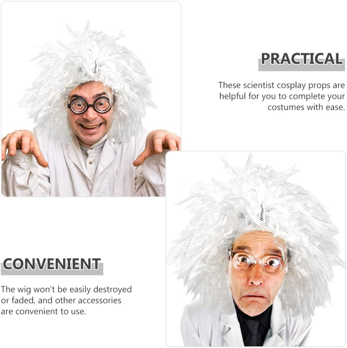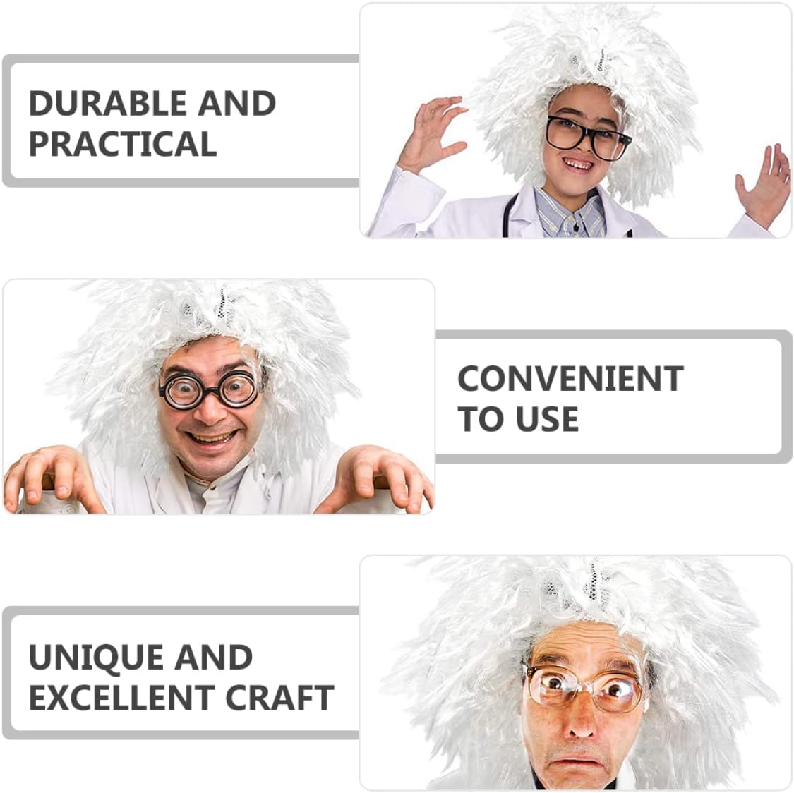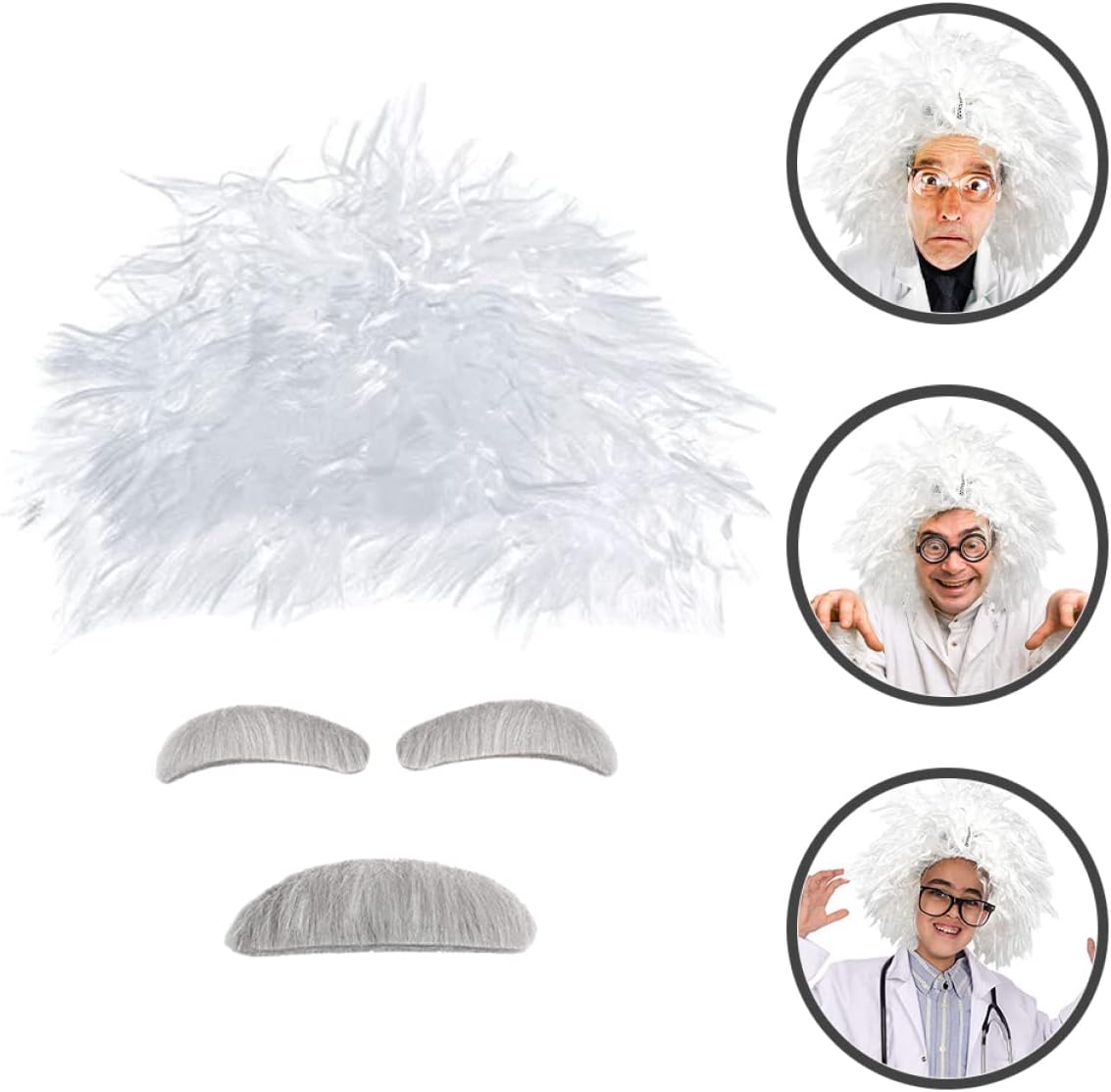 dei pacchetti 1 parrucca, 1 sopracciglio finto, 1 baffo finto Caratteristiche - : costume da professore multiplo -Dimensioni: 33,00X33,00X20,00 cm/12,97X12,97X7,86 pollici kit costume professore -Materiale: Filati per accessori da costume da scienziato - Questa parrucca estremamente dettagliata e realistica può trasformare il tuo costume da scienziato in un baffo da scienziato. - Aggiungerà sicuramente un effetto drammatico al tuo costume da scienziato e contribuirà a creare un'atmosfera più con i baffi da scienziato cosplay. - Ottima fattura, massima attenzione a ogni dettaglio, crea facilmente un accattivante costume da scienziato per Halloween. - Sono perfetti per feste in maschera, feste a tema, cosplay, Halloween o qualsiasi altro accessorio per costumi da professore per eventi speciali. - Accessori adatti per costumi da scienziato cosplay, per donne e uomini, soddisfano facilmente le tue esigenze di parrucca da scienziato. Descrizione della merce sopracciglia da scienziato Che tratti di una festa a tema scienziato o semplicemente di una festa di Halloween, ti consente di goderti il tuo tempo. parrucca da scienziato Taglia unica adatta alla maggior delle persone da indossare, per offrirti un'esperienza di cosplay piacevole. baffi da scienziato cosplay Questi fantasiosi oggetti di scena per cosplay da scienziato ti consentono di goderti il tuo tempo di cosplay