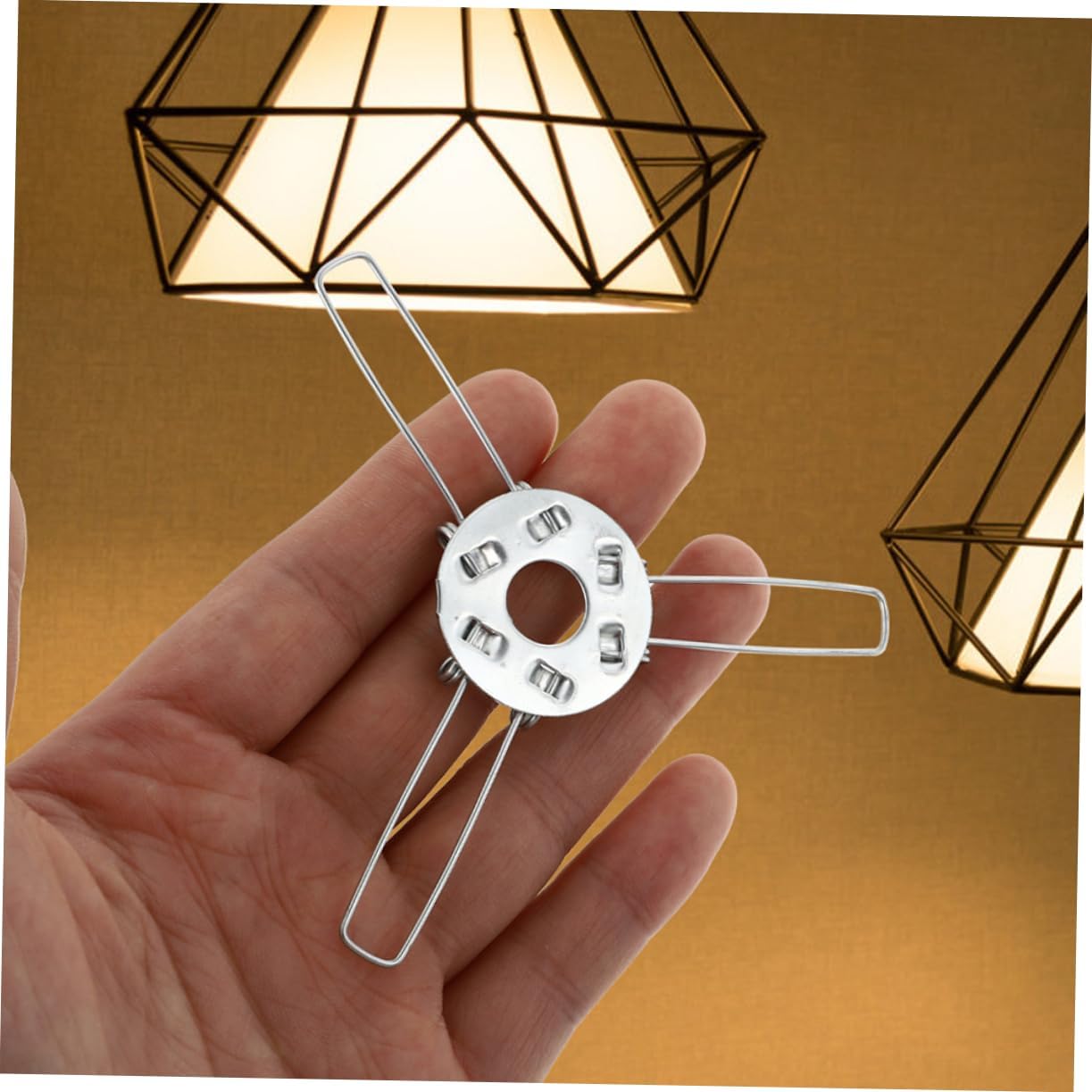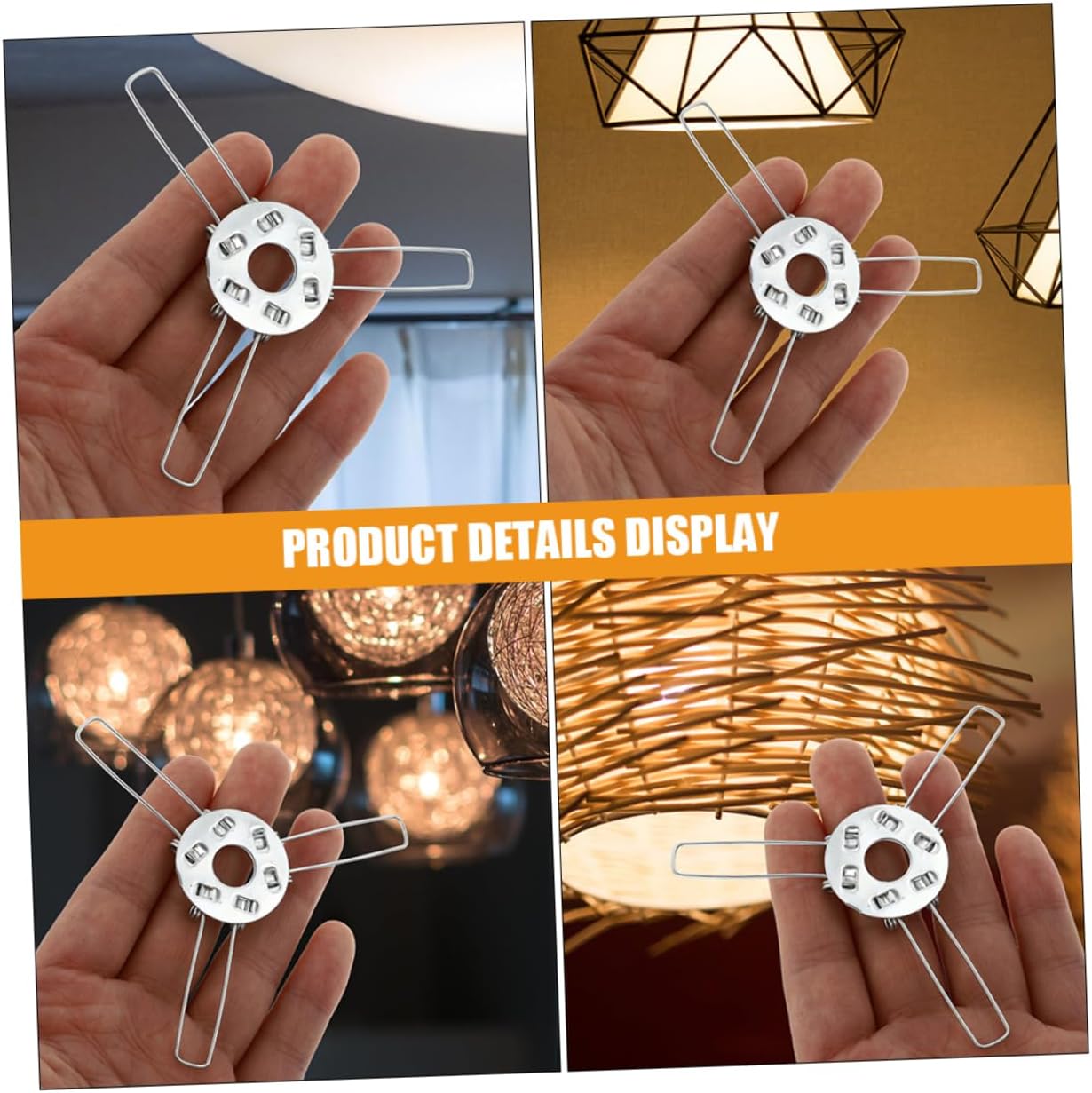 Porta paralume in : sostituisci perfettamente quello vecchio, che può essere utilizzato per fissare la maggior dei paralumi e del telaio del paralume. Fibbie di supporto del paralume: elevata durezza per prestazioni di lavoro stabili, rende questo supporto solido, non facile da rompere, fibbie a molla in ferro. Fibbie di supporto per paralume: un supporto stabile per paralume per lampada a sospensione, elevata durezza, non facile da deformare o rompere, accessori per plafoniere. Supporto di fissaggio per paralume: utilizzando materiale in ferro, questo supporto per paralume a molla è resistente all'usura e durevole per lunghi tempi di manutenzione, morsetti per paralume per lampada a sospensione. Adattatore per molla paralume: accessori di illuminazione per la casa o per officine di riparazione, che è professionale e semplice, supporto fai da te a forma di lampada.